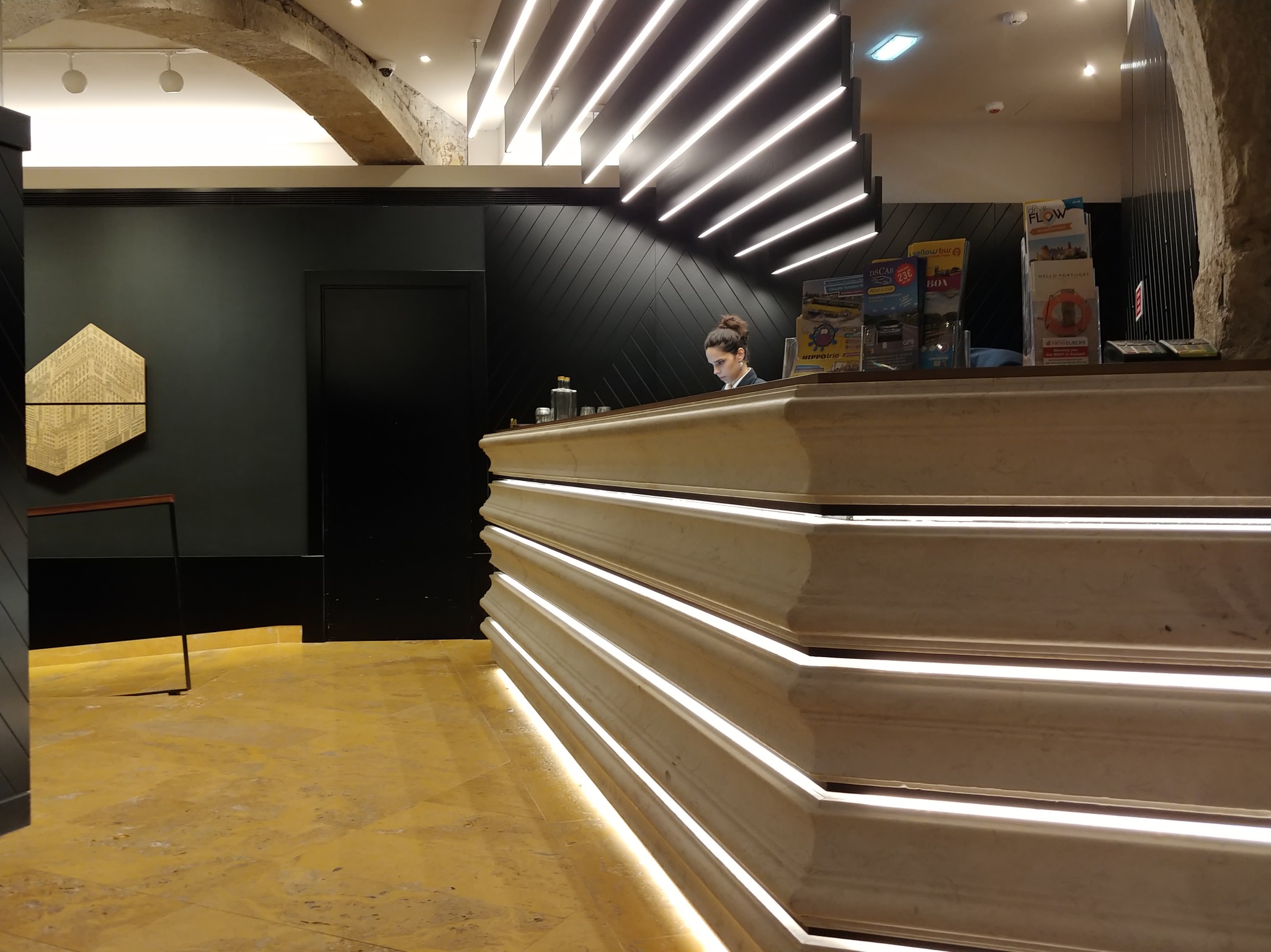 Back at the hotel (reception desk at My Story Hotel Tejo)