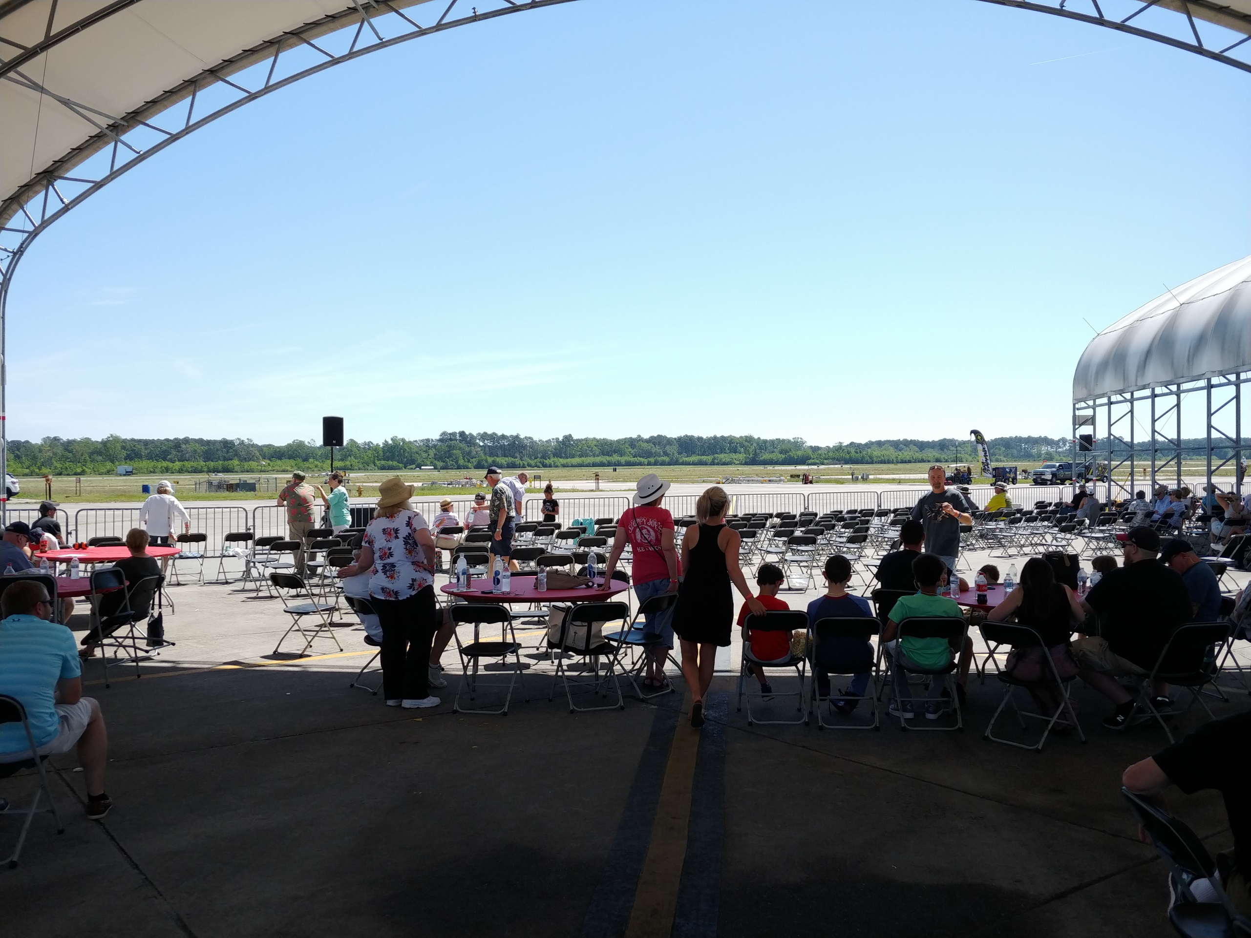 We were in an area with sn overhead sun shelter, food & drinks, and tables and chairs.