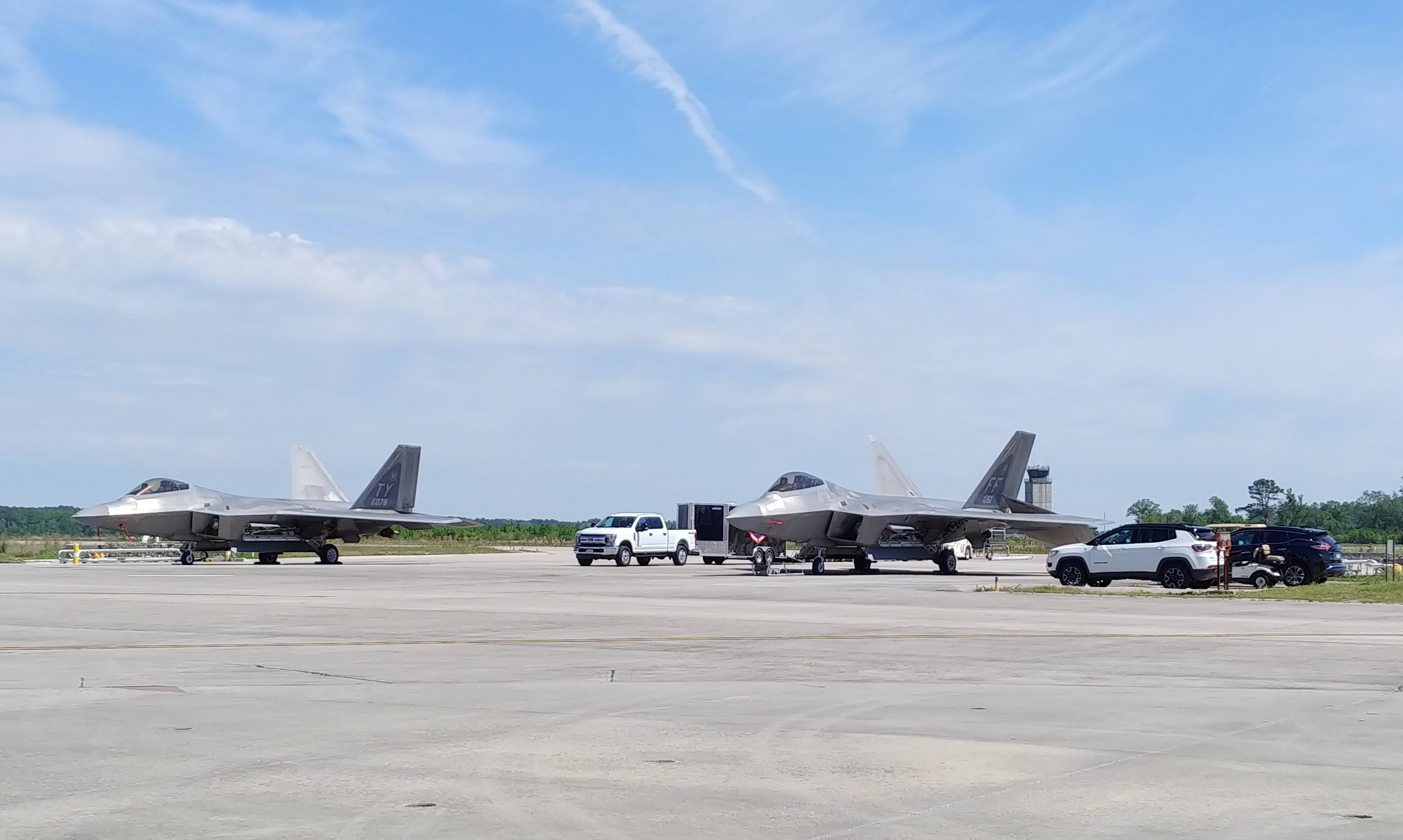 Two F-22's were parked nearby. Later, one fired up and did some flying.![]()