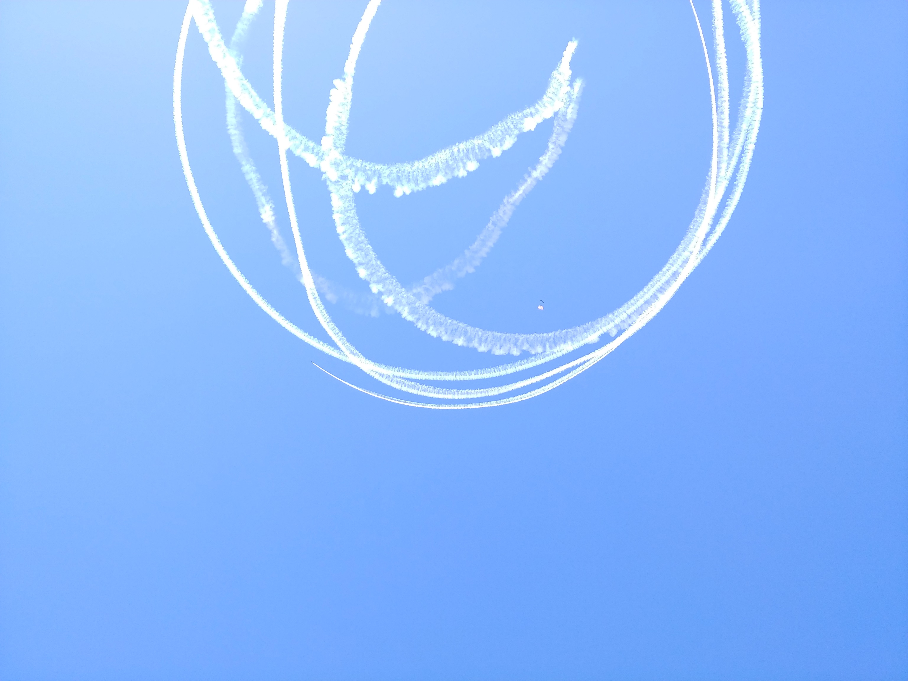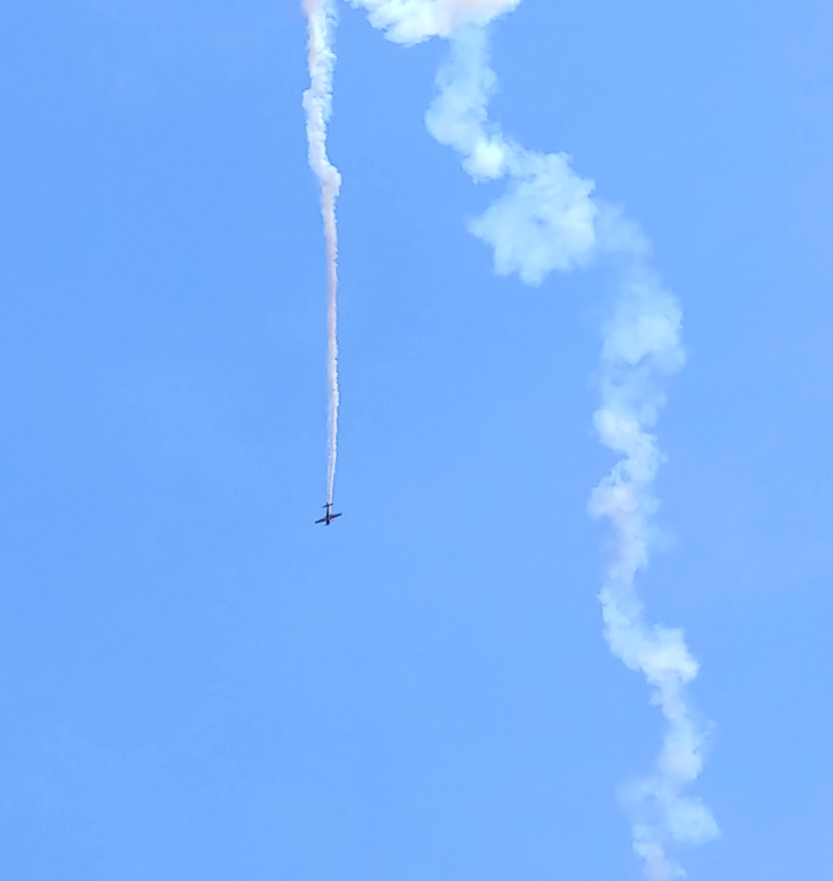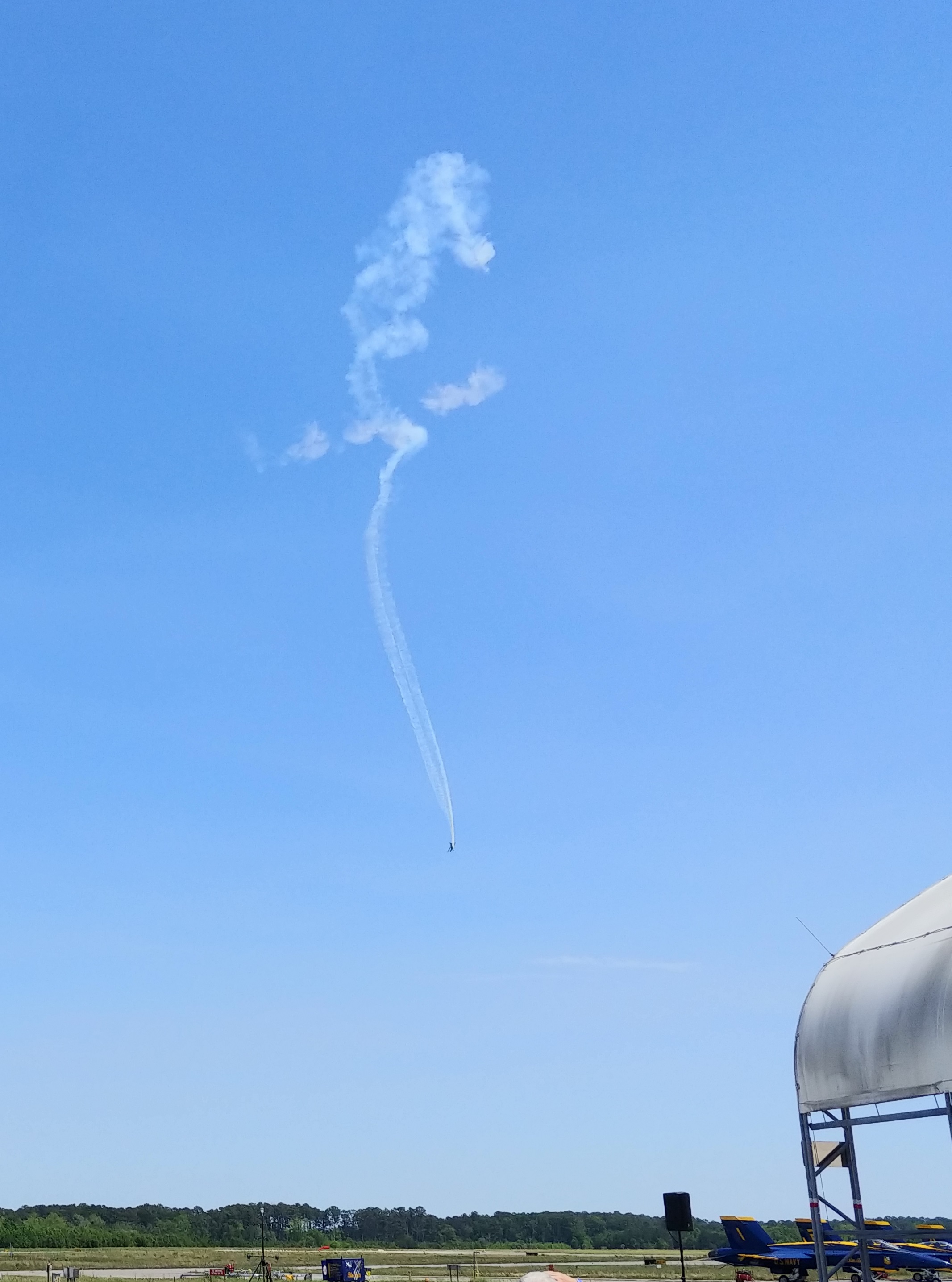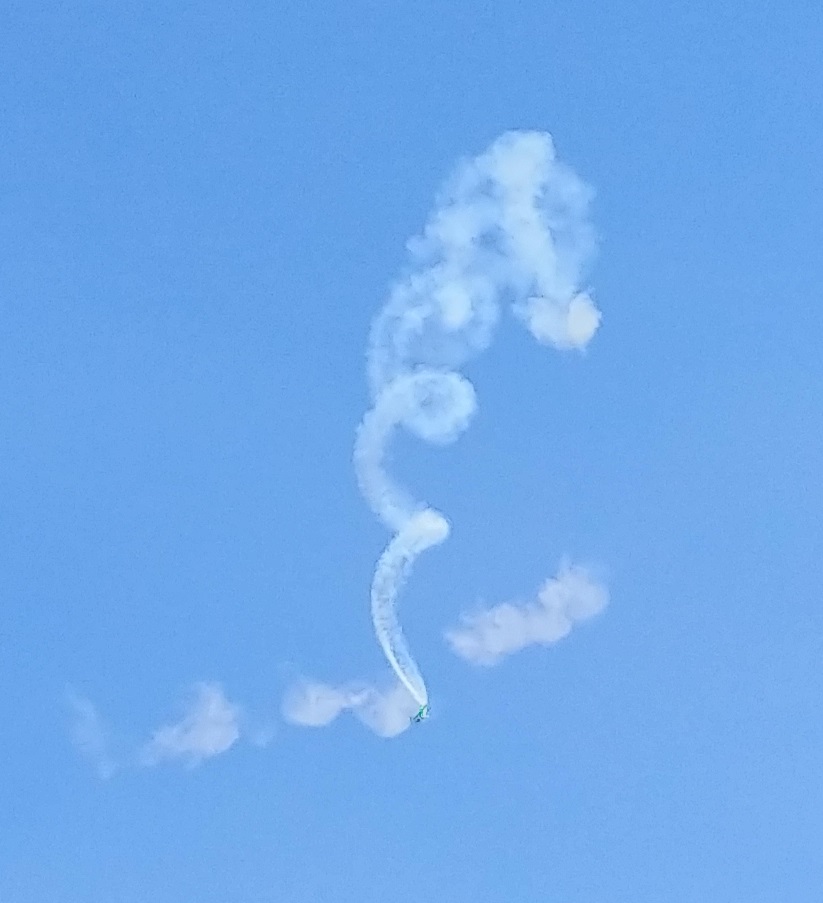 The smoke trail left by another daredevil's corkscrewing descent.![]()
