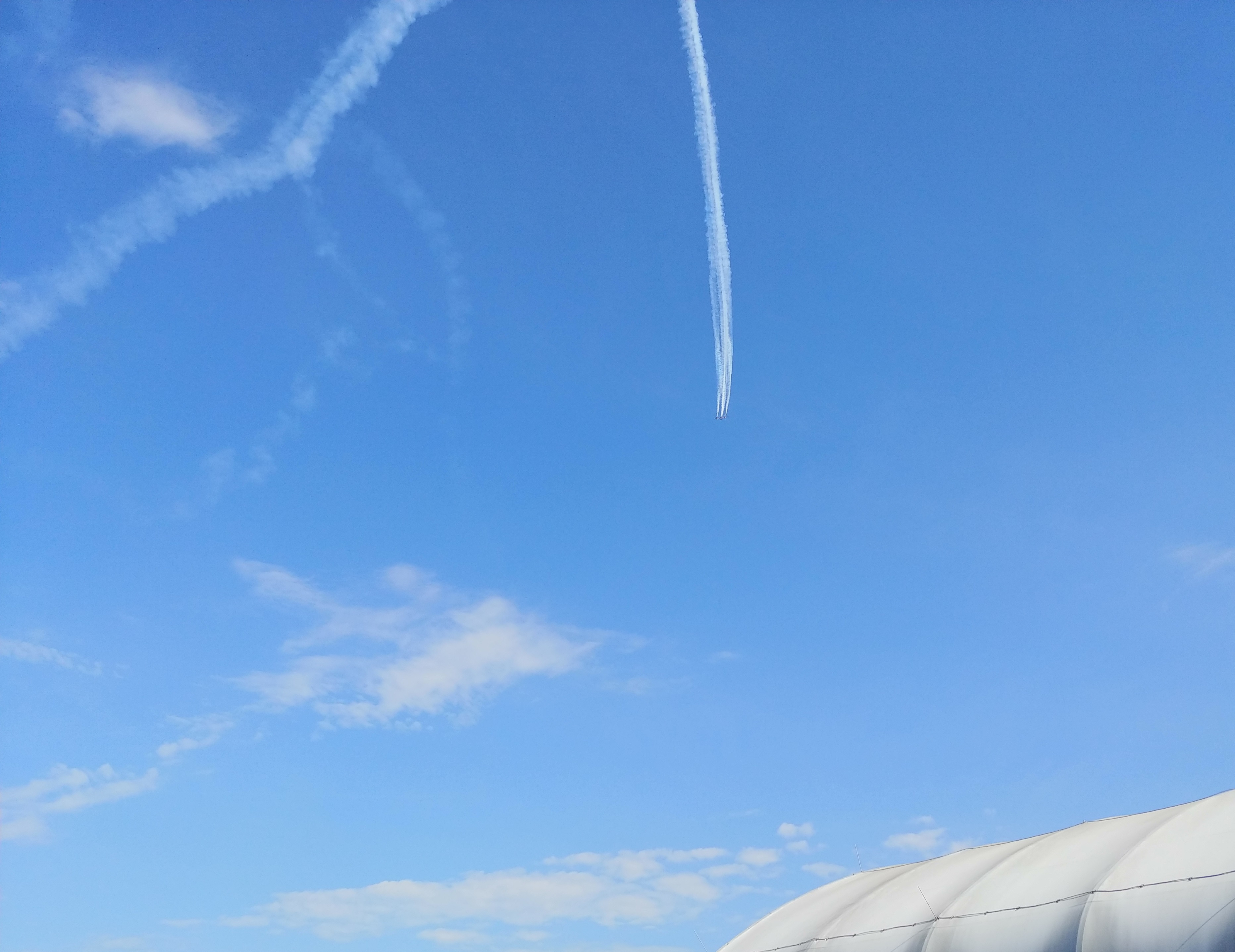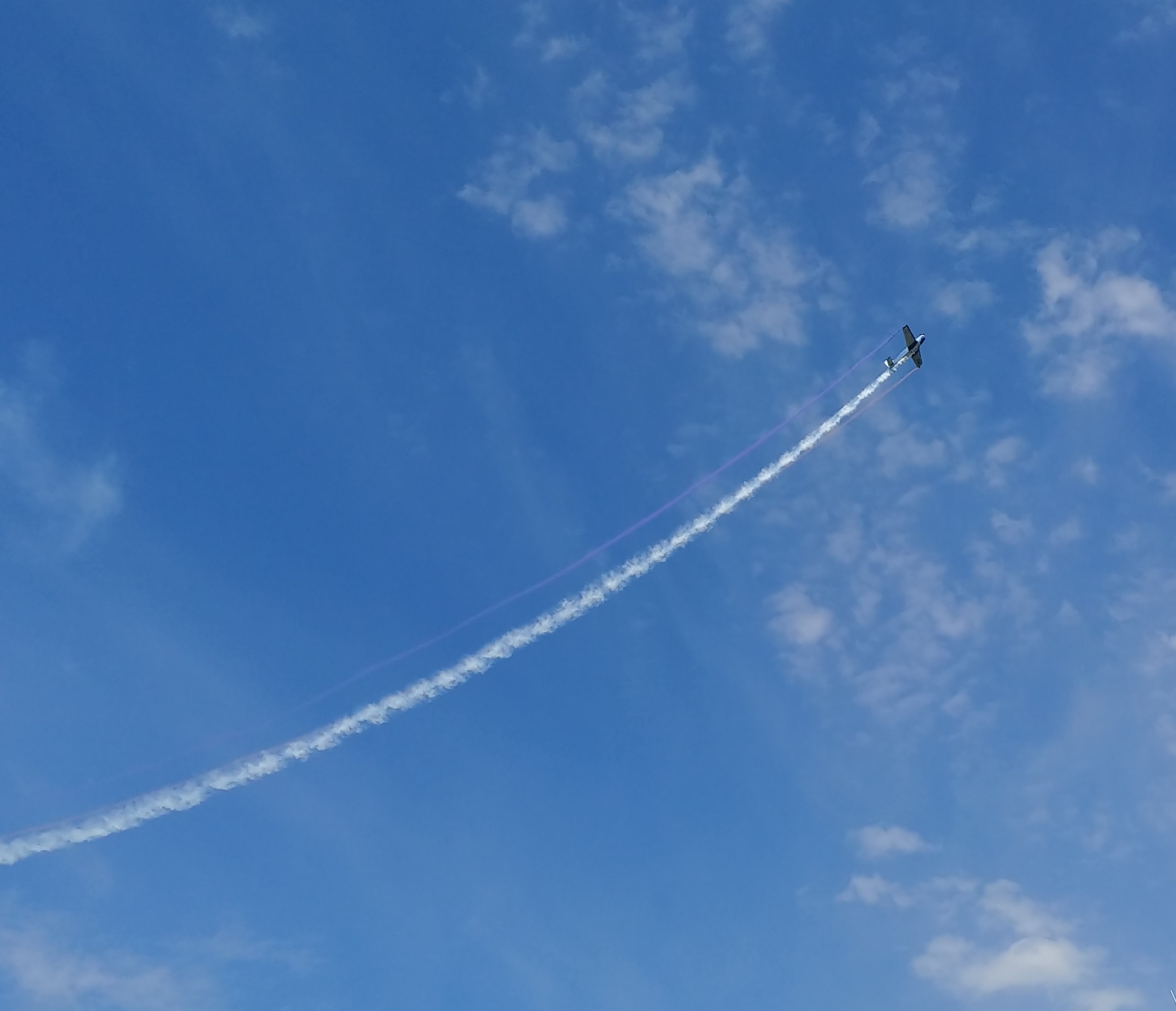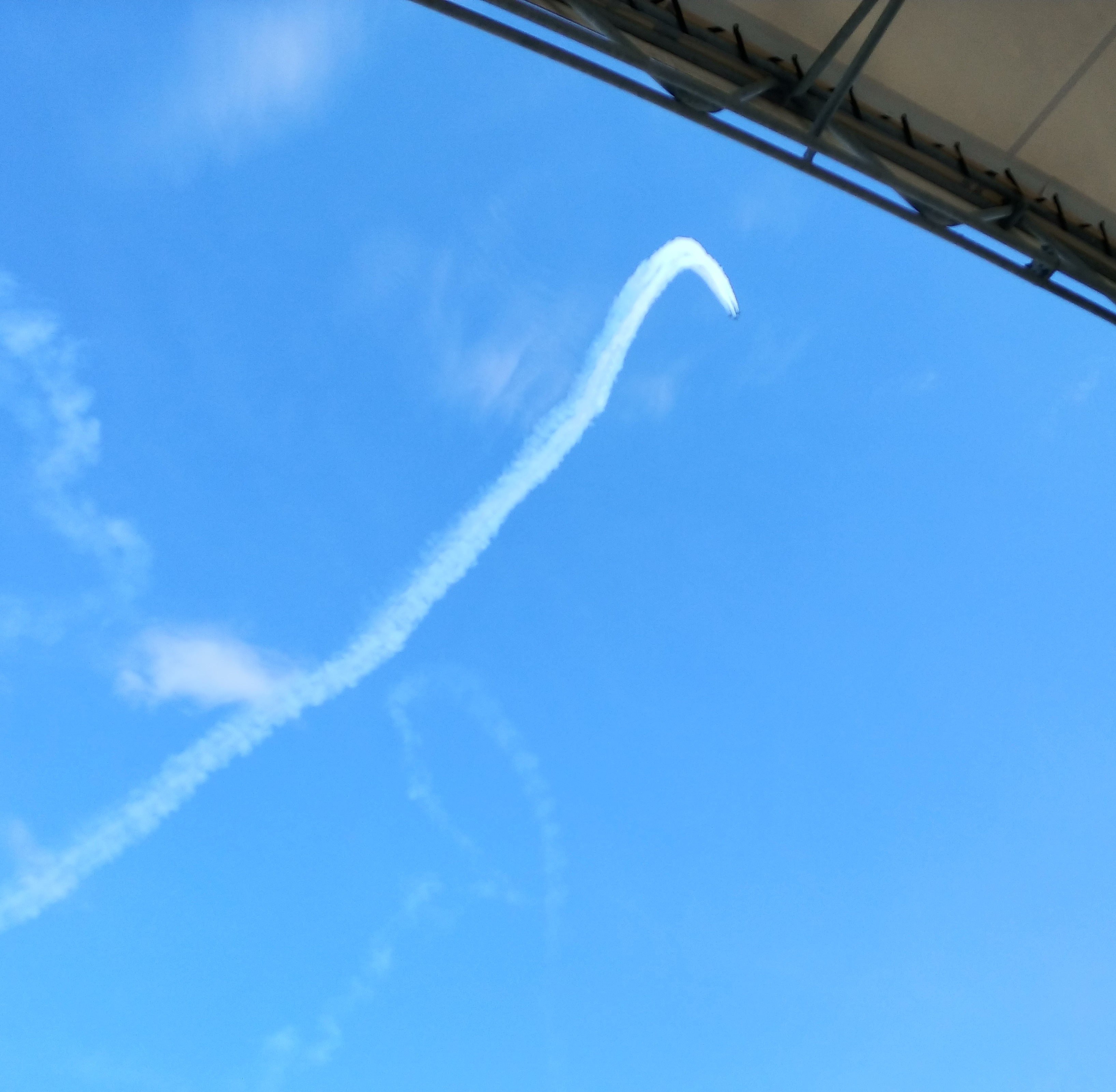 The smoke trail left by another daredevil's corkscrewing descent.![]()