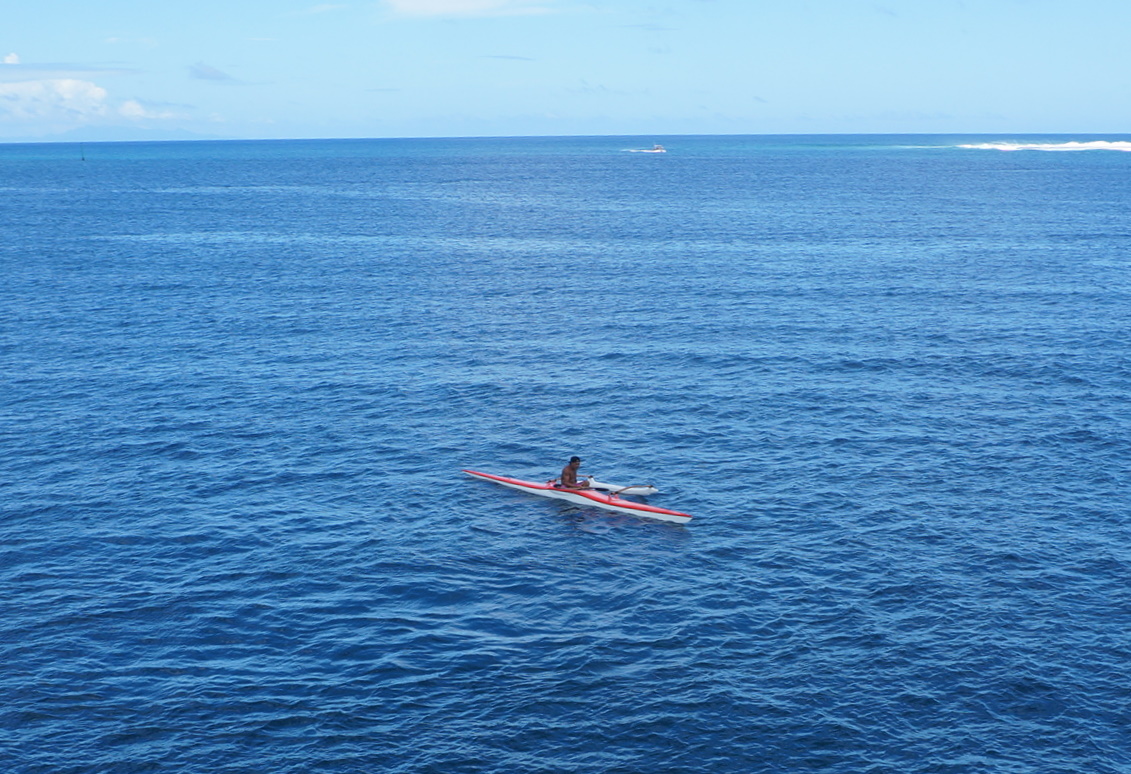 This kayaker had an outrigger on the port side of his craft.