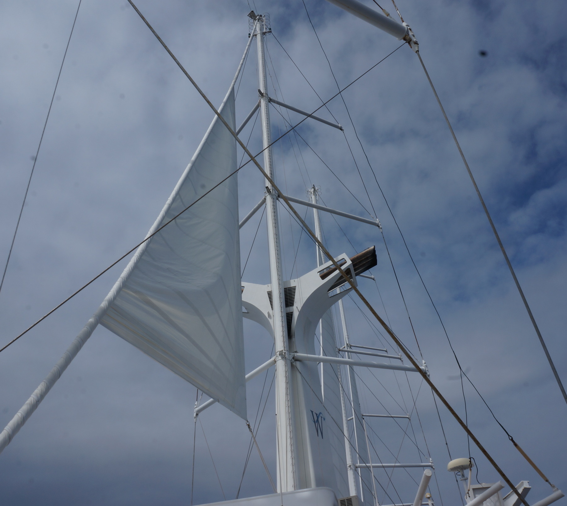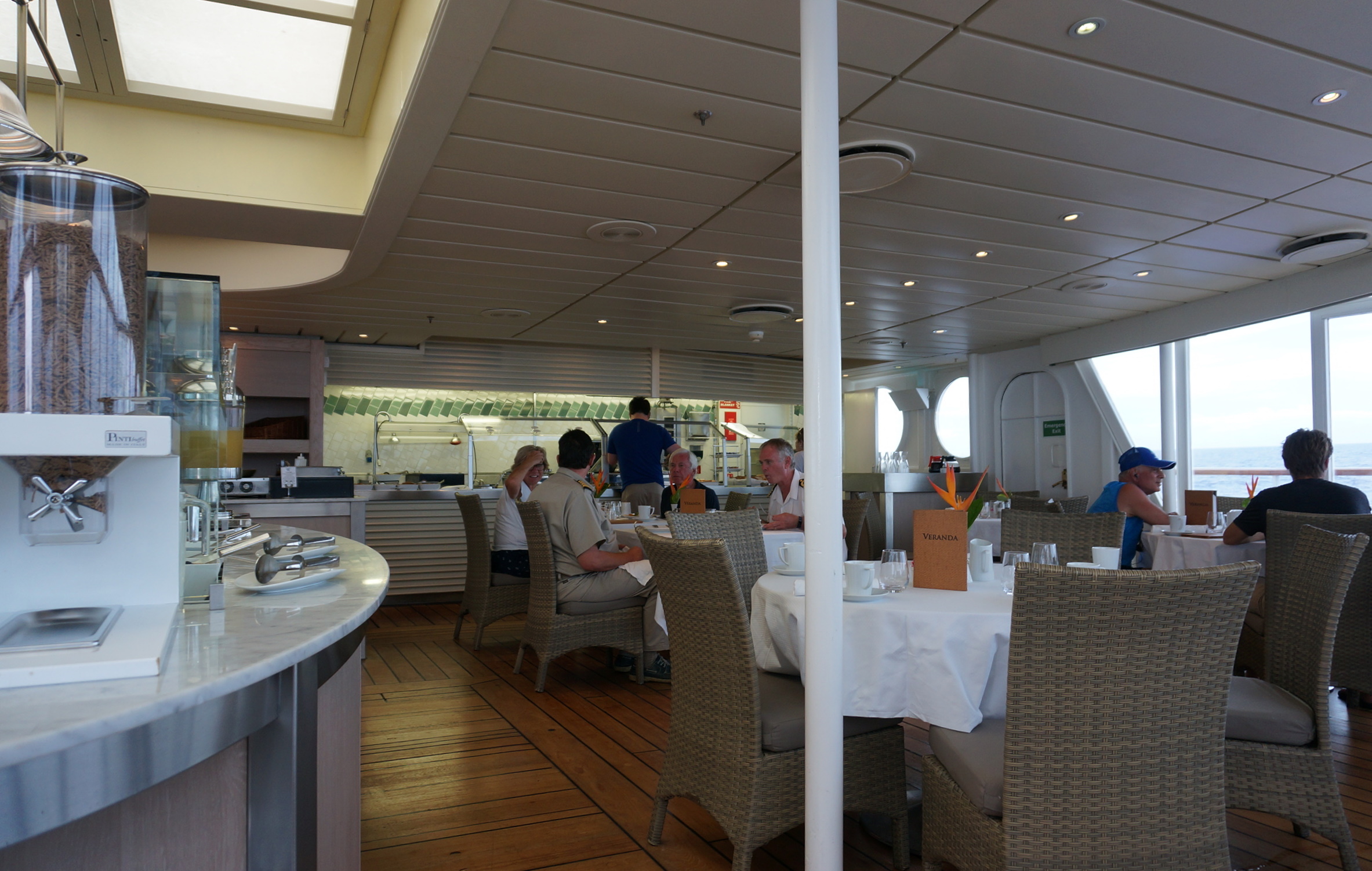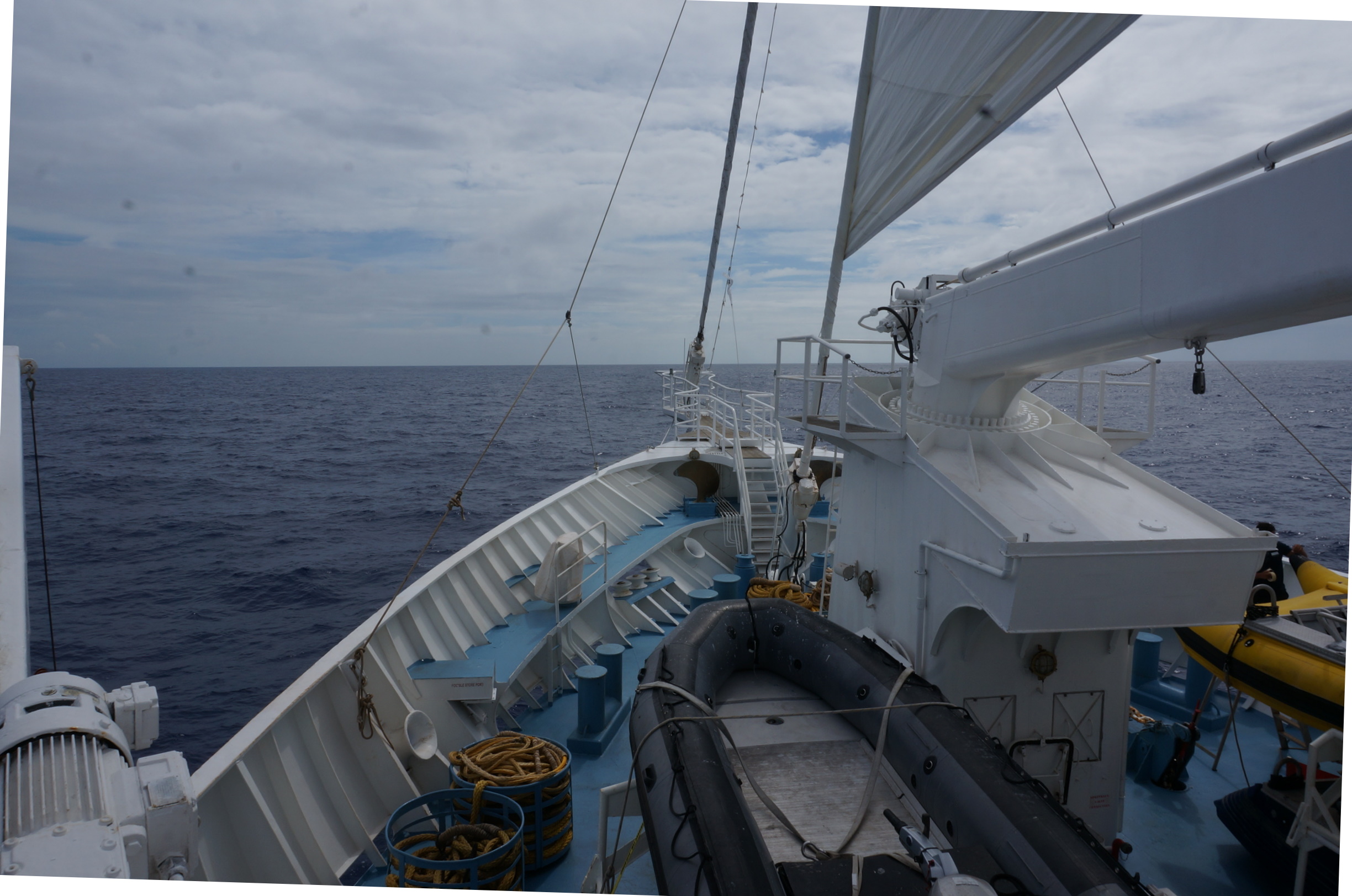 At sea. We wandered around the boat, taking pictures.