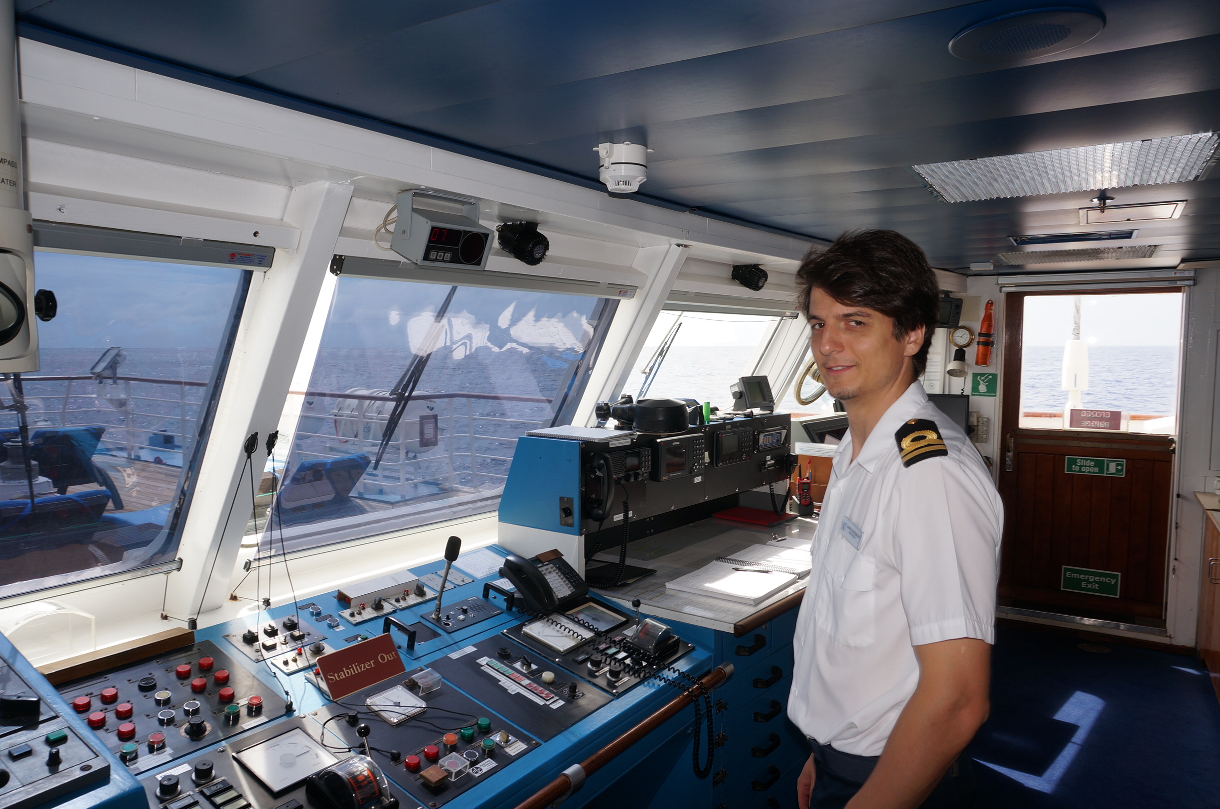 Actually, the autopilot was doing the steering, and he was talking with the guests who visited the bridge.