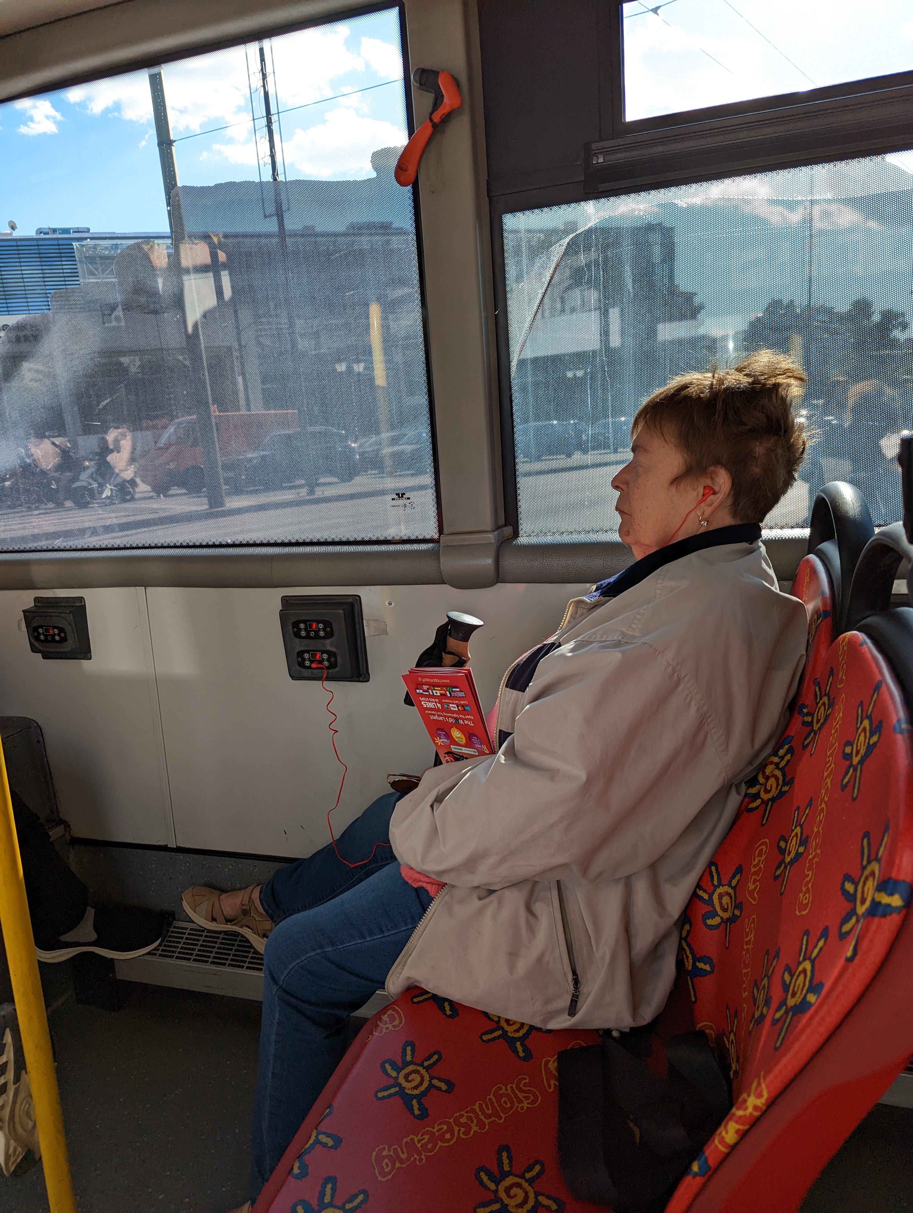 Steph, listening intently to the narrator on the HoHo bus![]()