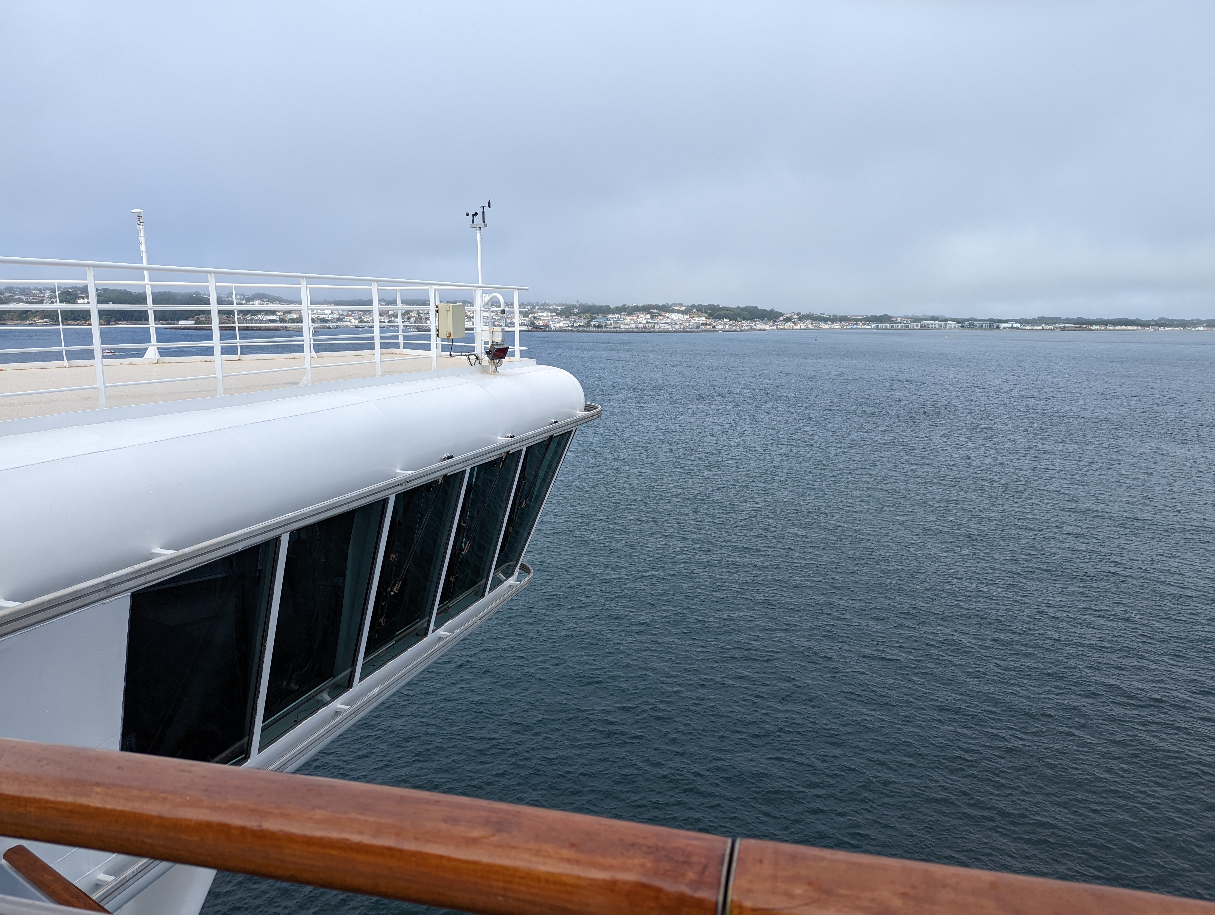 View from our balcony looking starboard; the ship's bridge is at the lower left of the photo.![]()