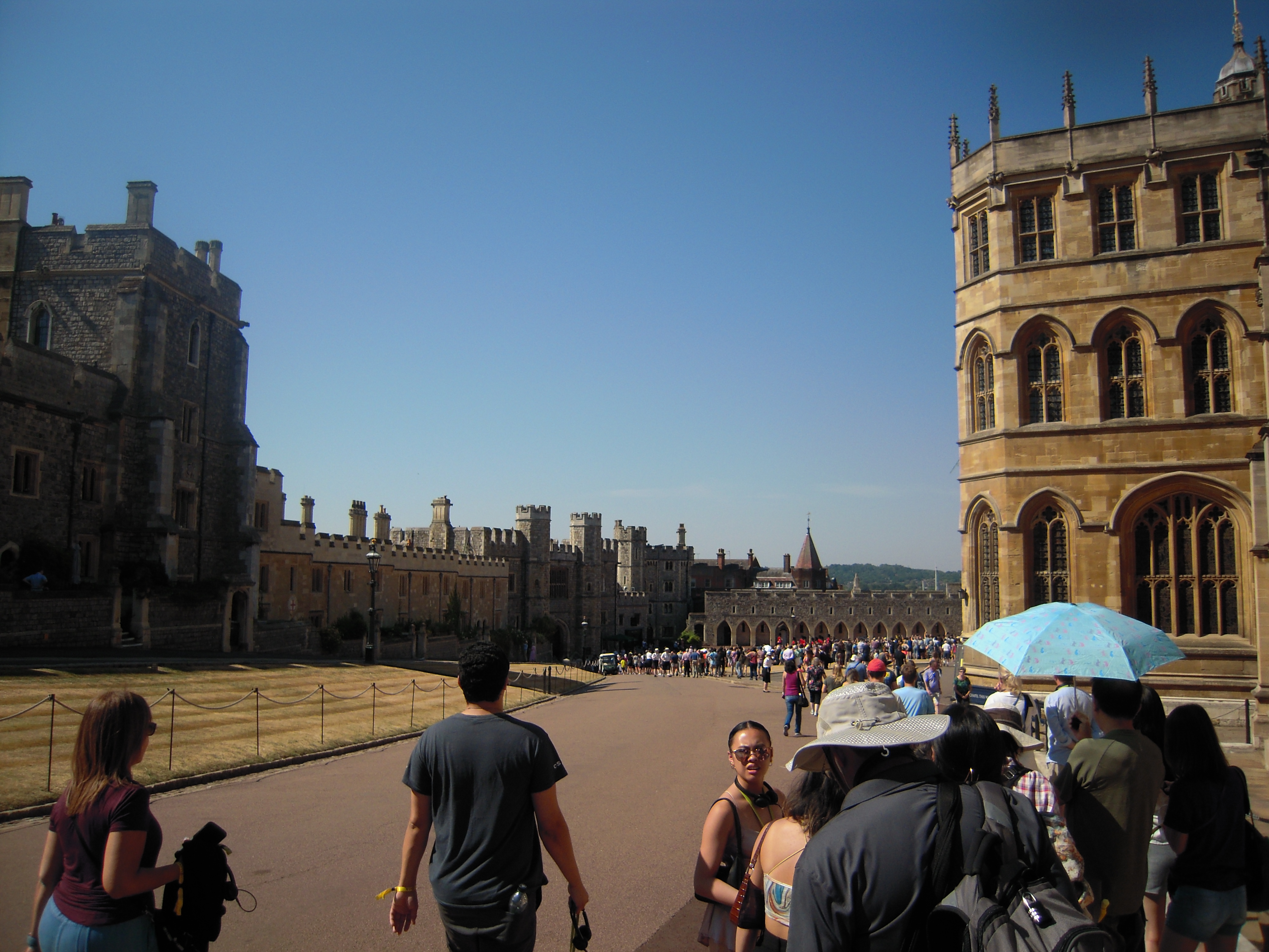 Windsor Castle in the distance. This photo was taken from the bus parking lot.![]()