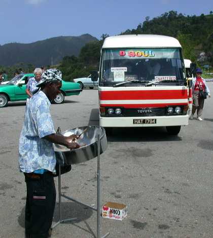Steel drummer at rest stop overlooking Port of Spain, Trinidad.