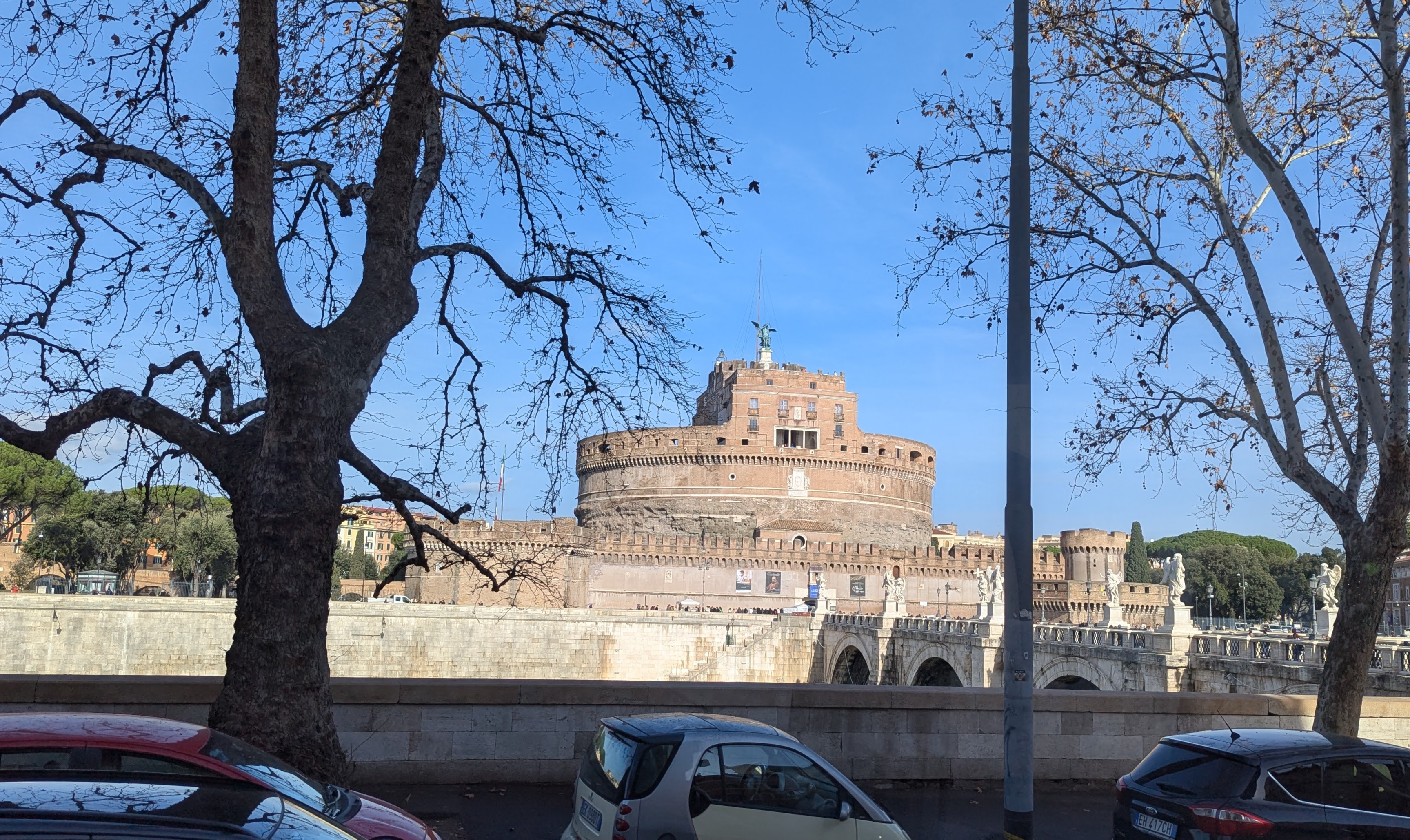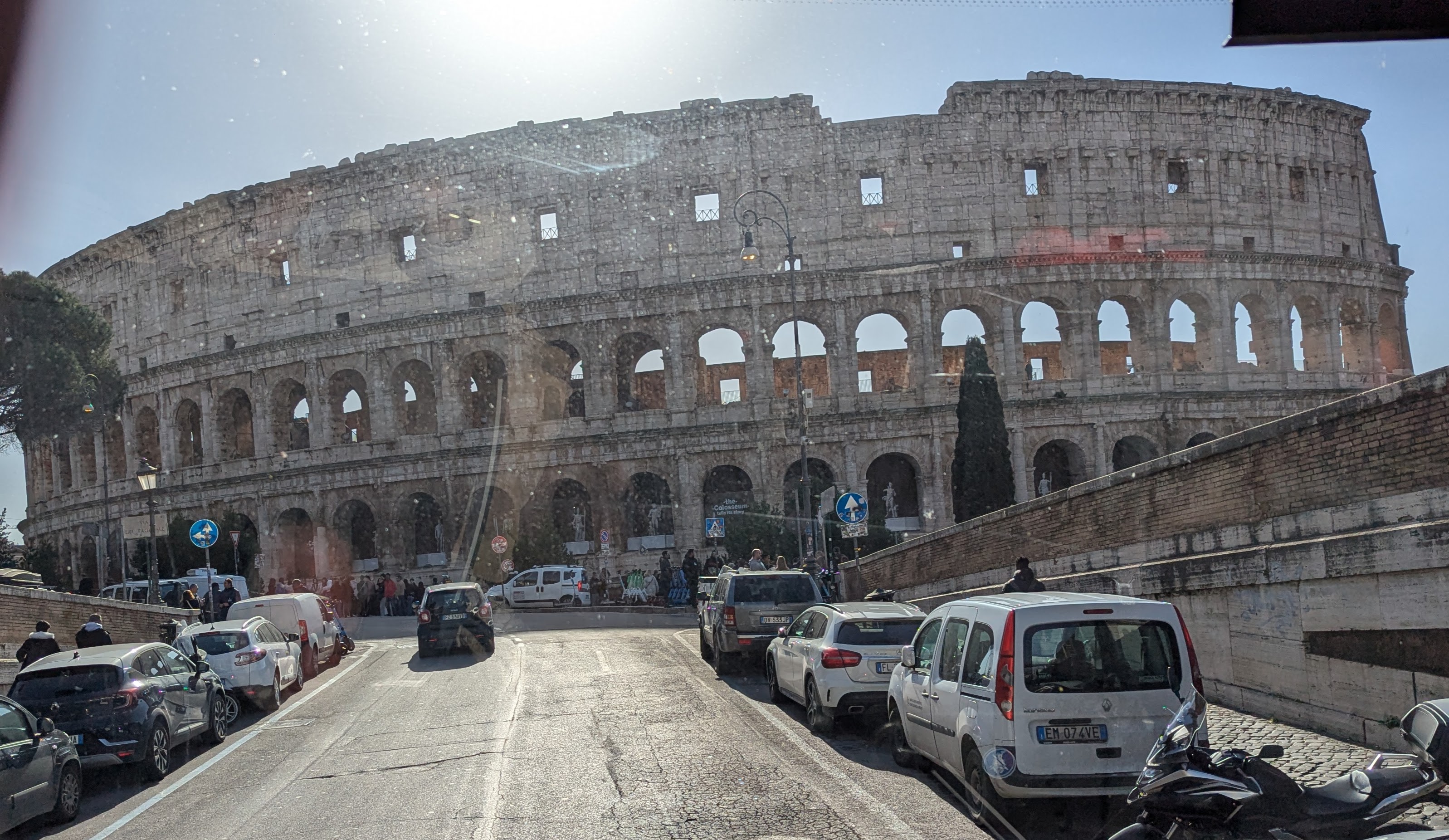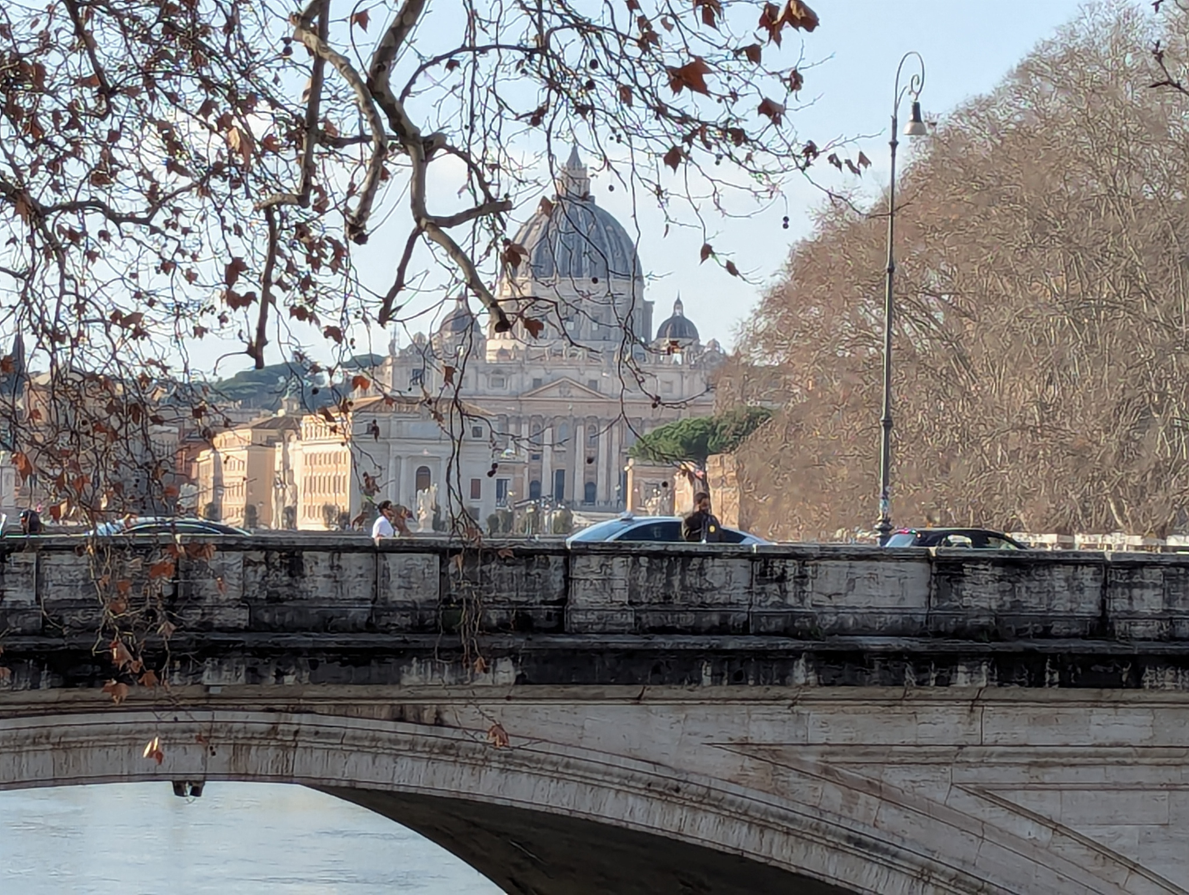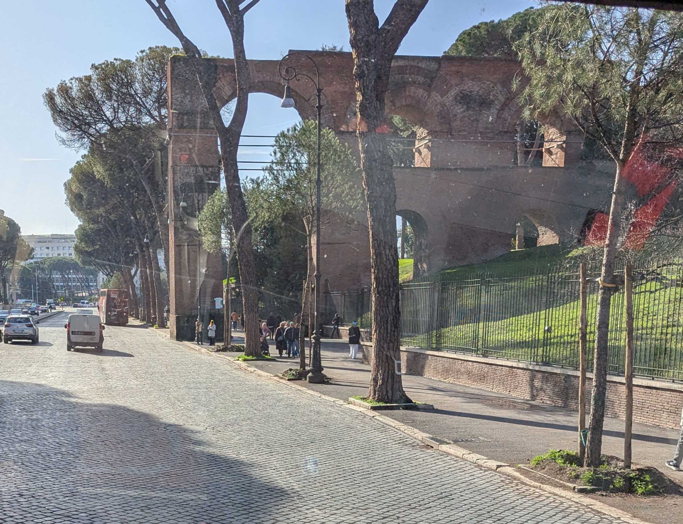 View of something from the bus stop area. Perhaps it wasSt. Peter's Basilica at the Vatican?