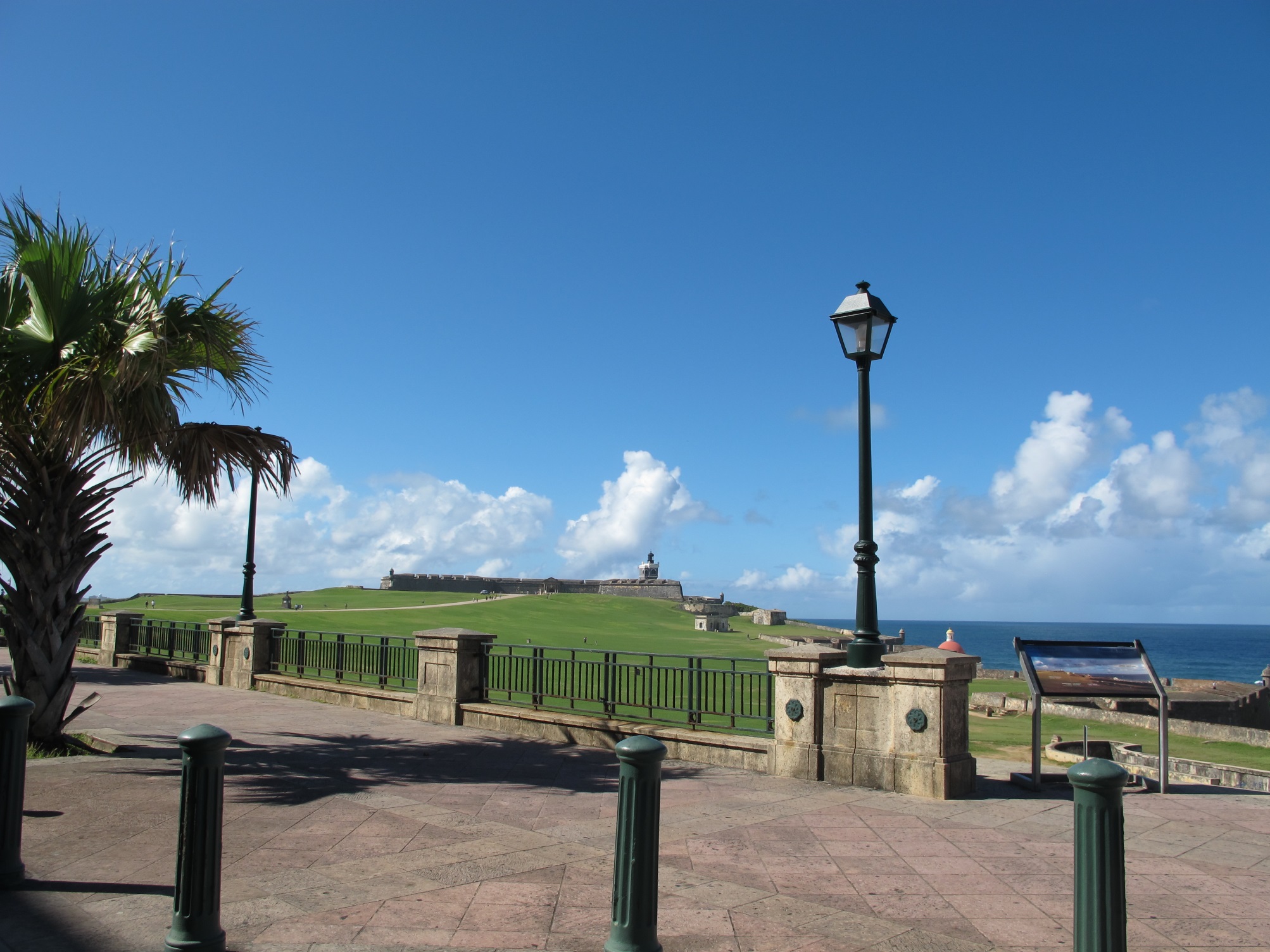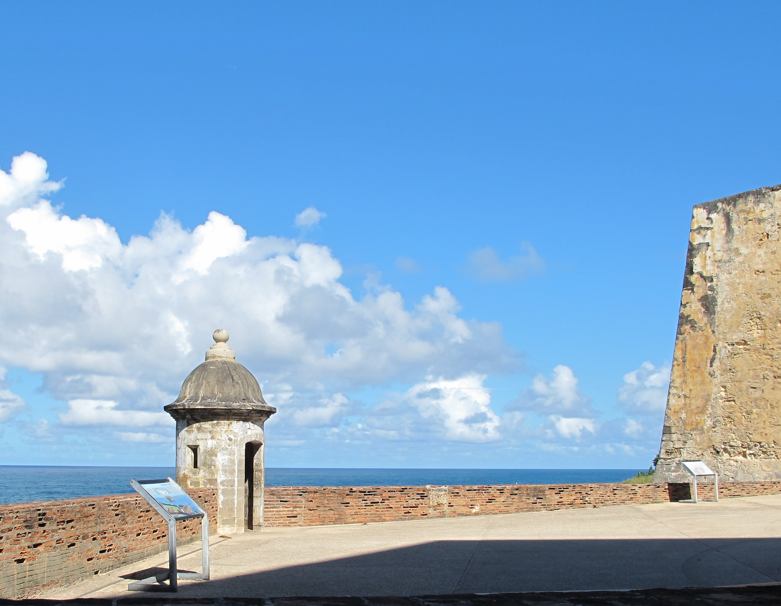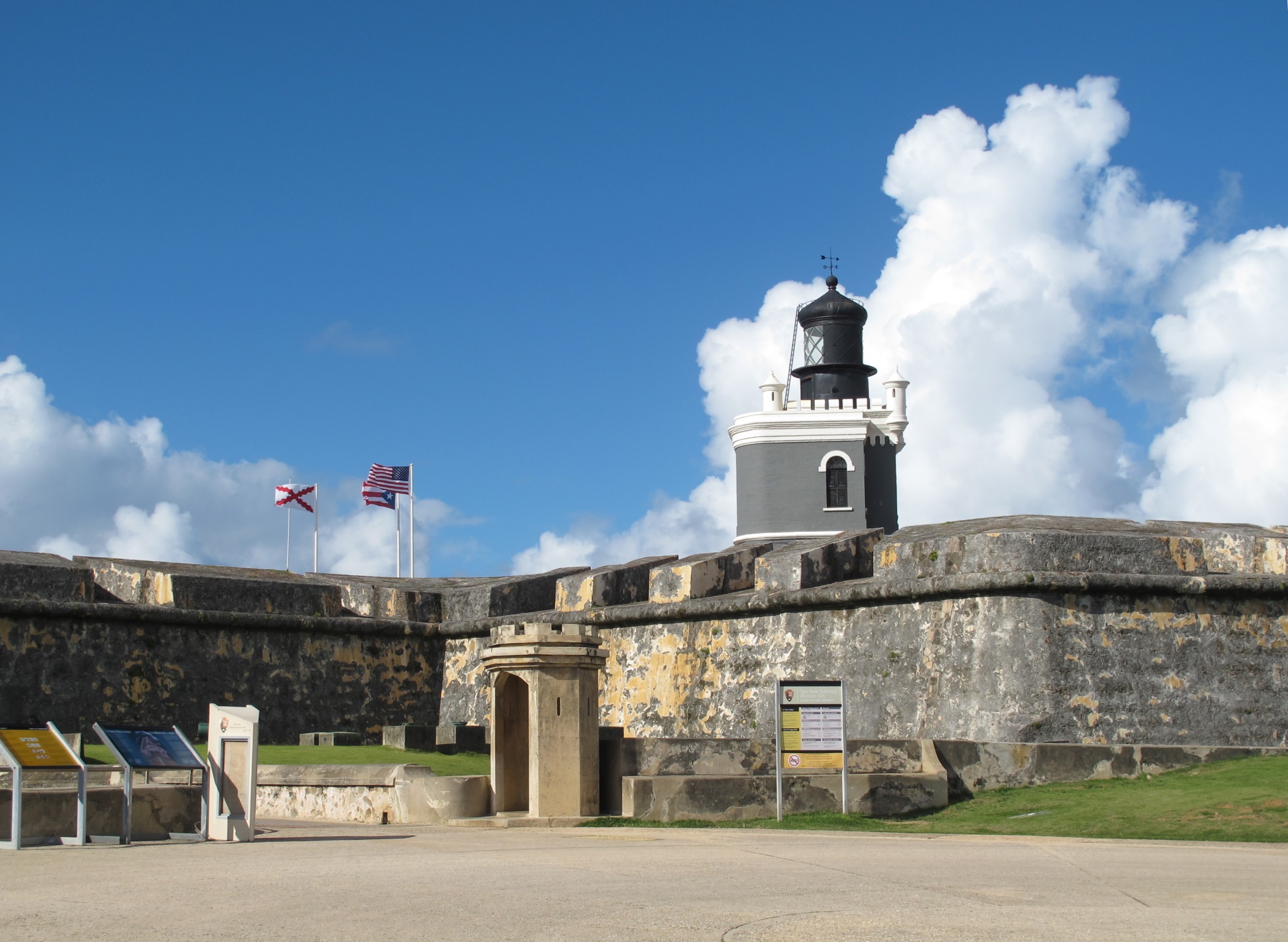 The flags of the US, Puerto Rico, and the Spanish flag that flew over El Morro for several hundred years.![]()