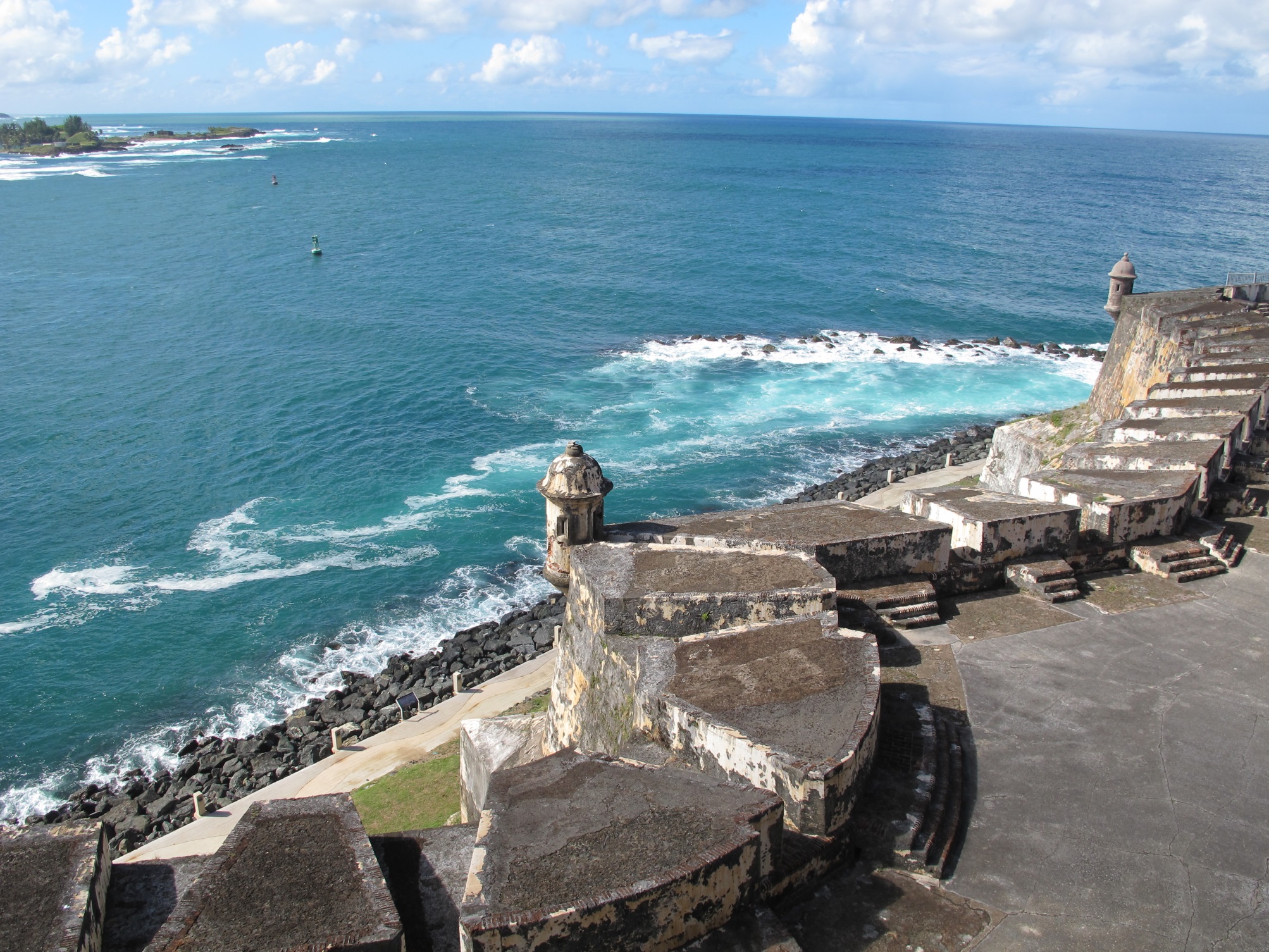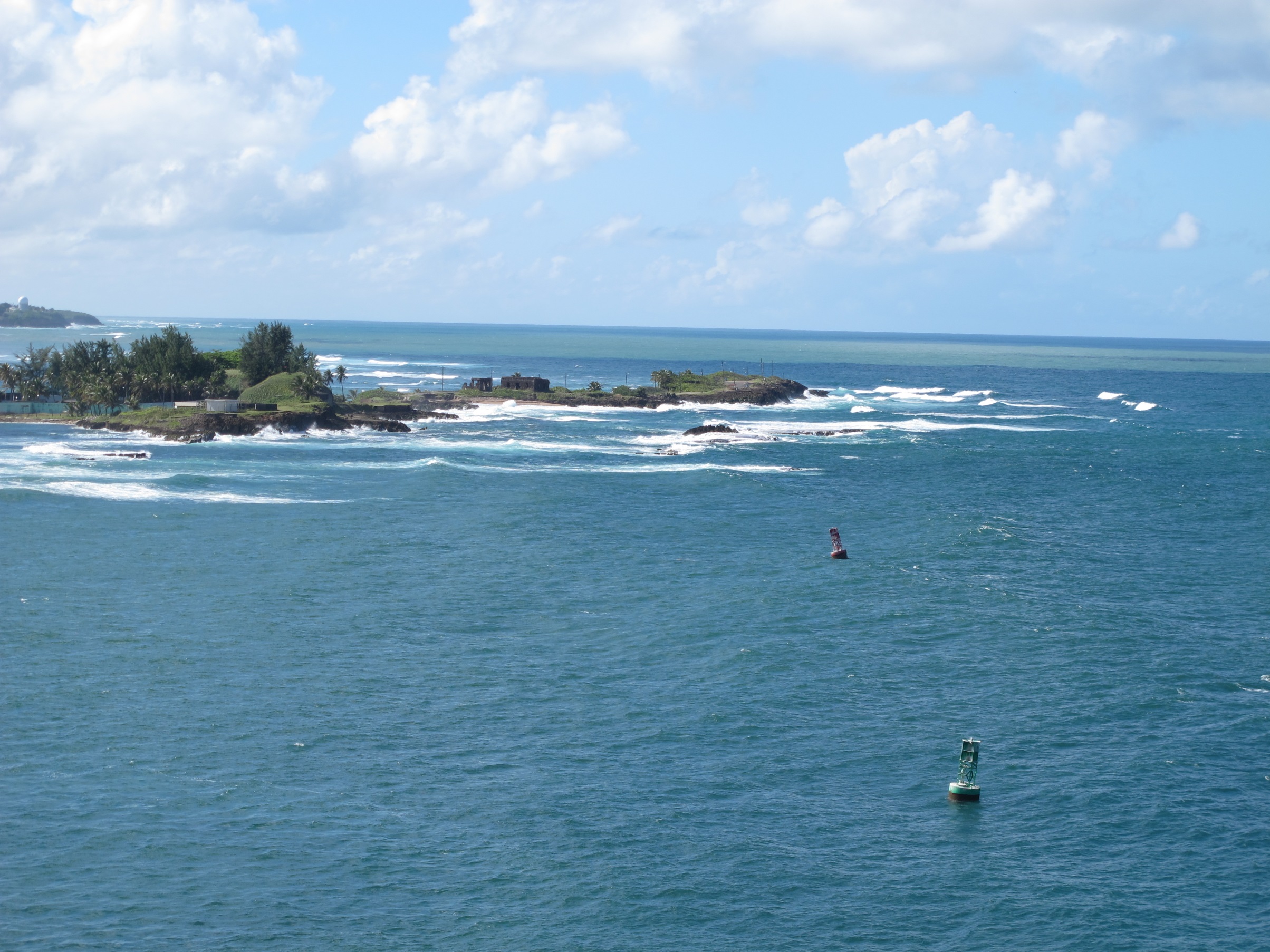 From El Morro, looking down at the entrance to the harbor — the two buoys mark the channel.![]()