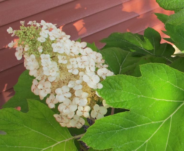 this shoot is from a plant we cut back in NJ, then brought to SC. For a long while, we really were wondering if it made it -