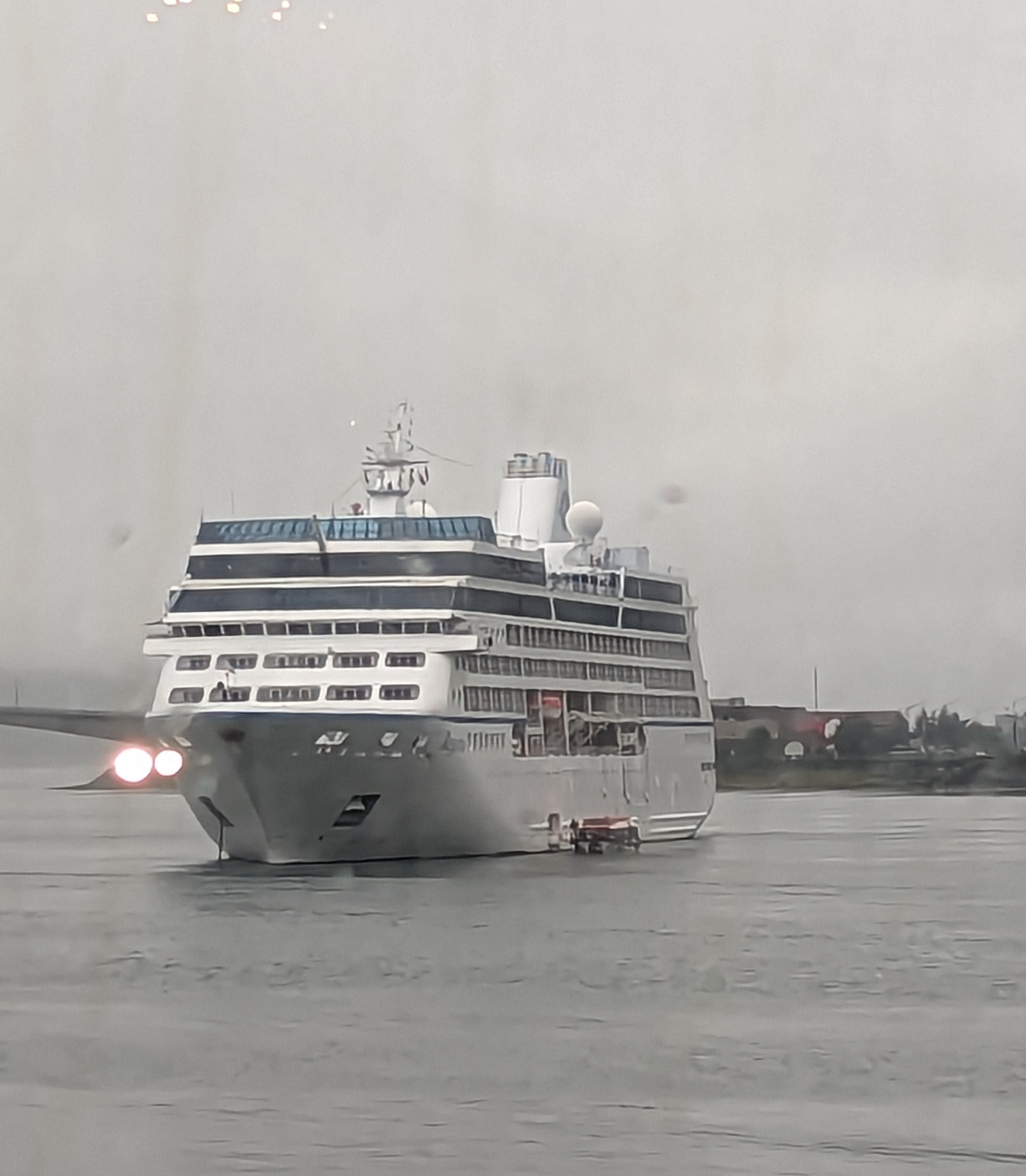 This ship was anchored and her passengers had to use tenders to come ashore.![]()