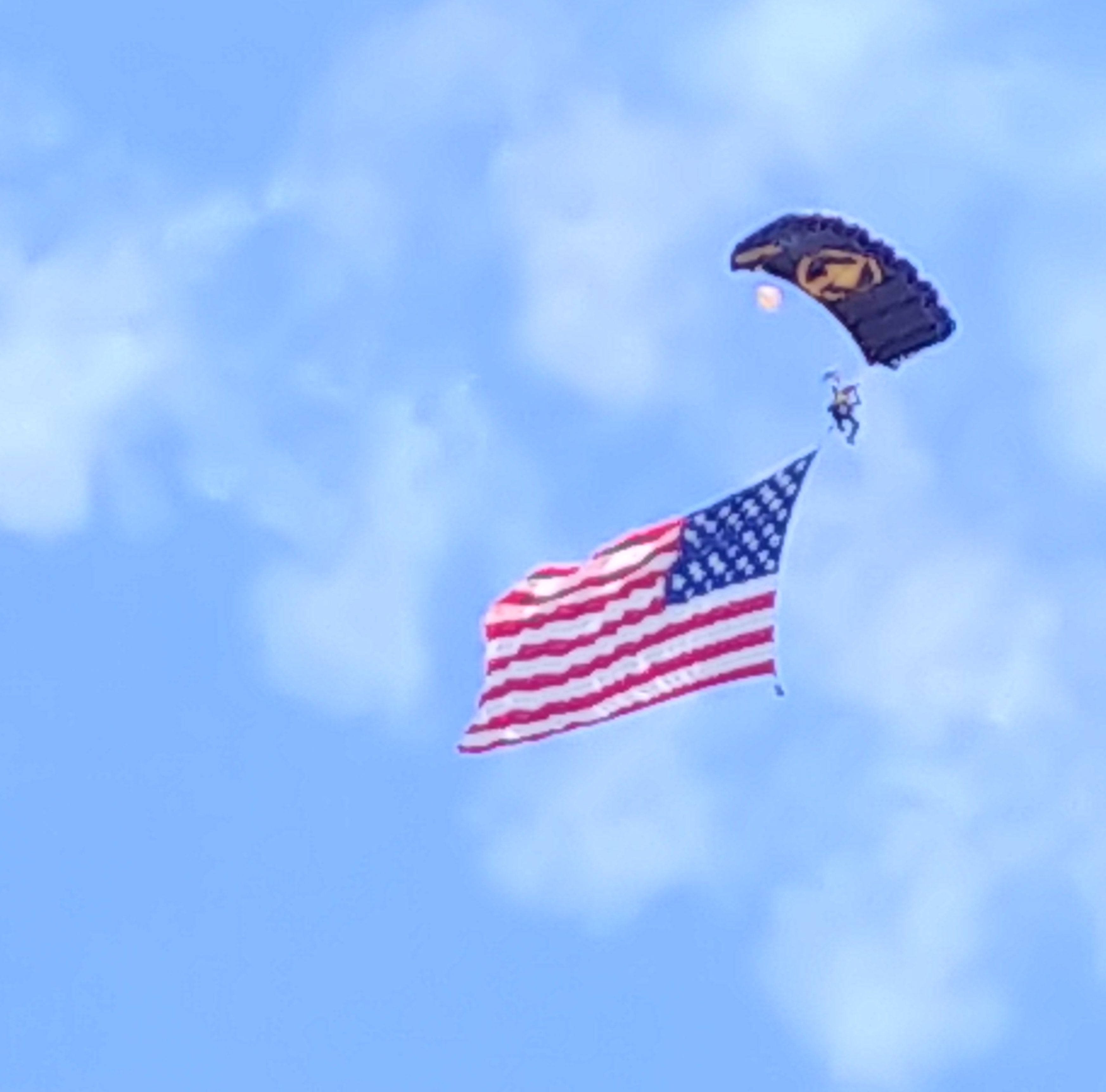 The US flag was parachuted in.![]()