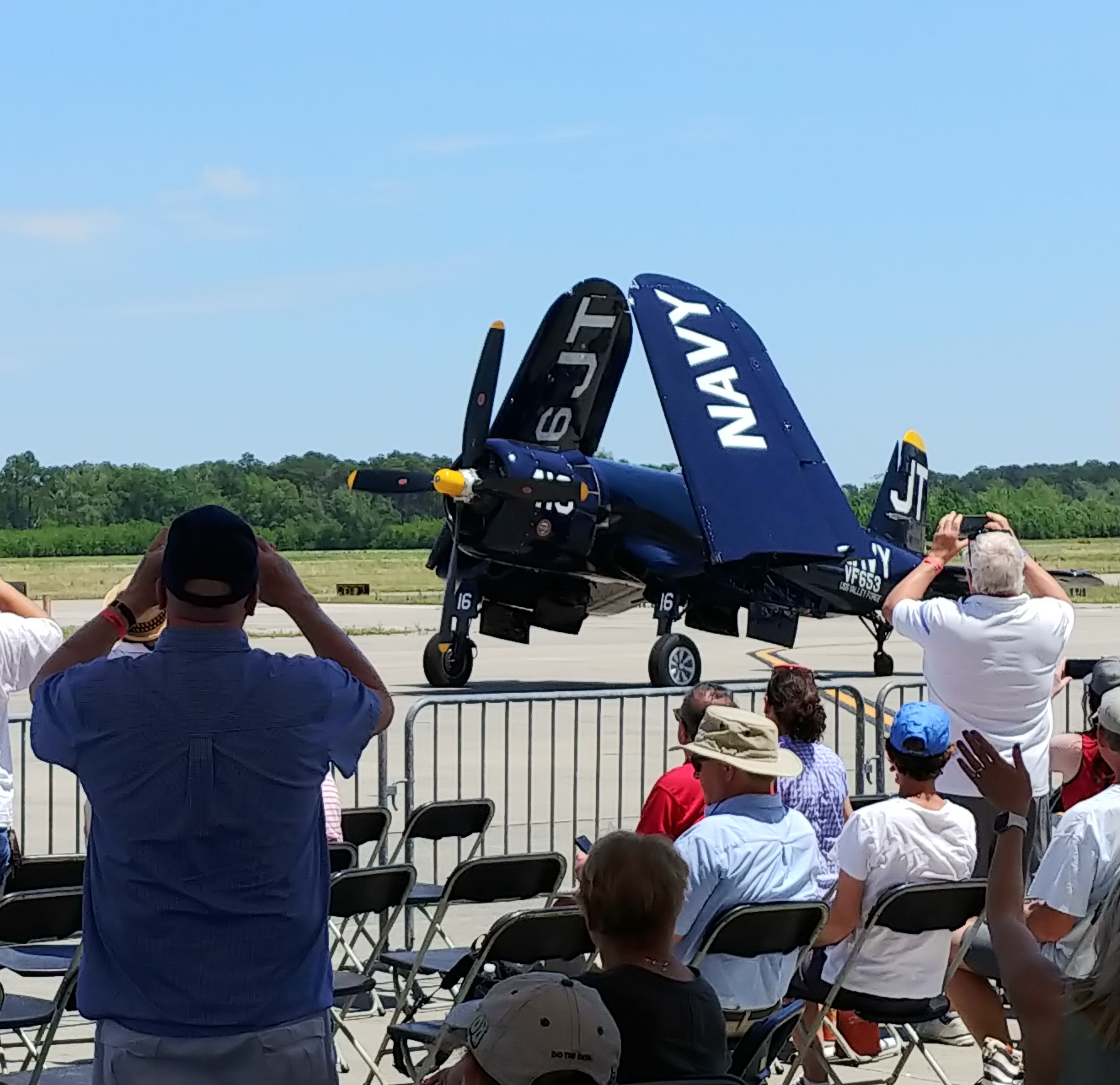The Corsair's wings fold for storing on aircraft carriers. The plane taxi'ed by after its flying demonstration.![]()