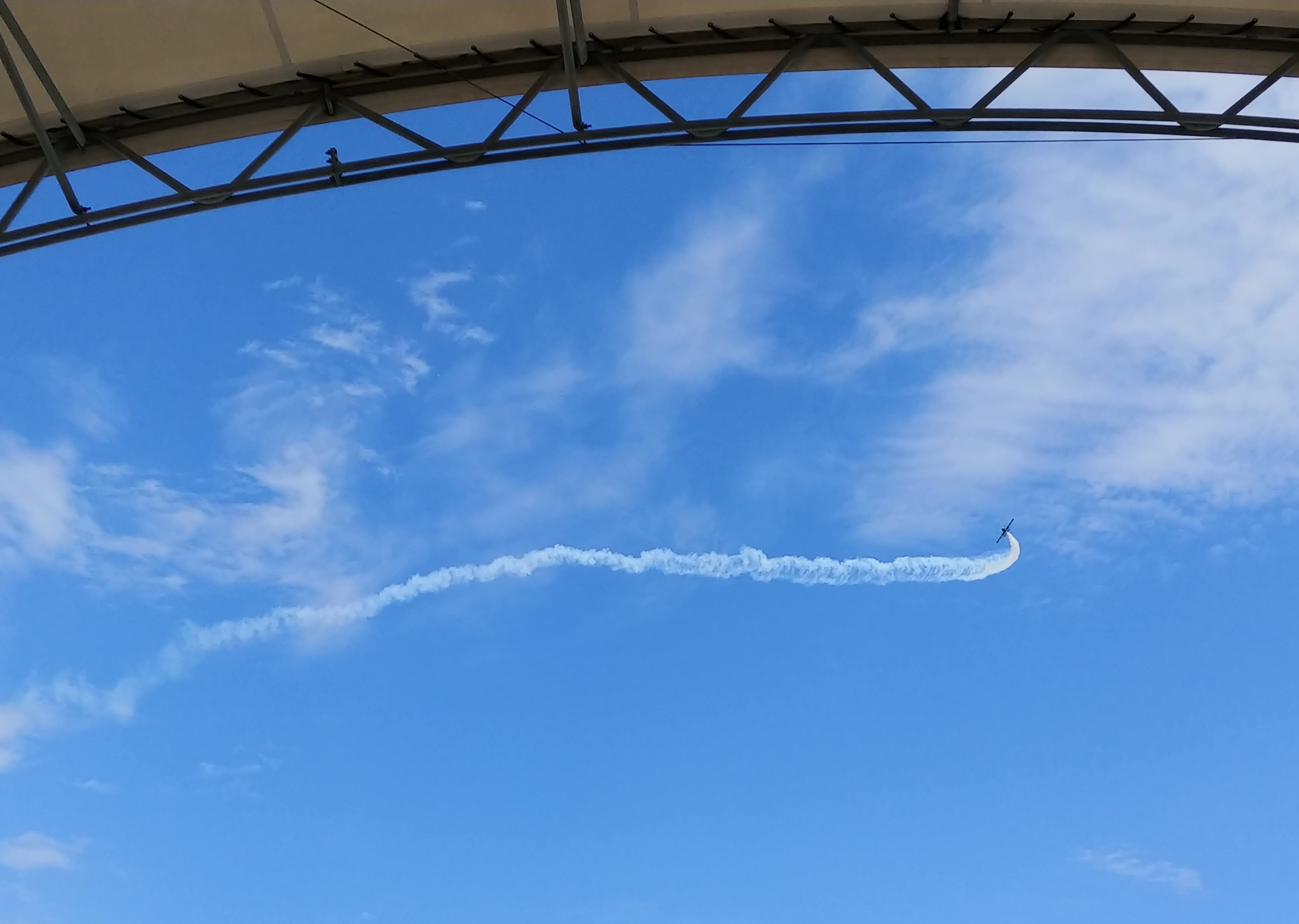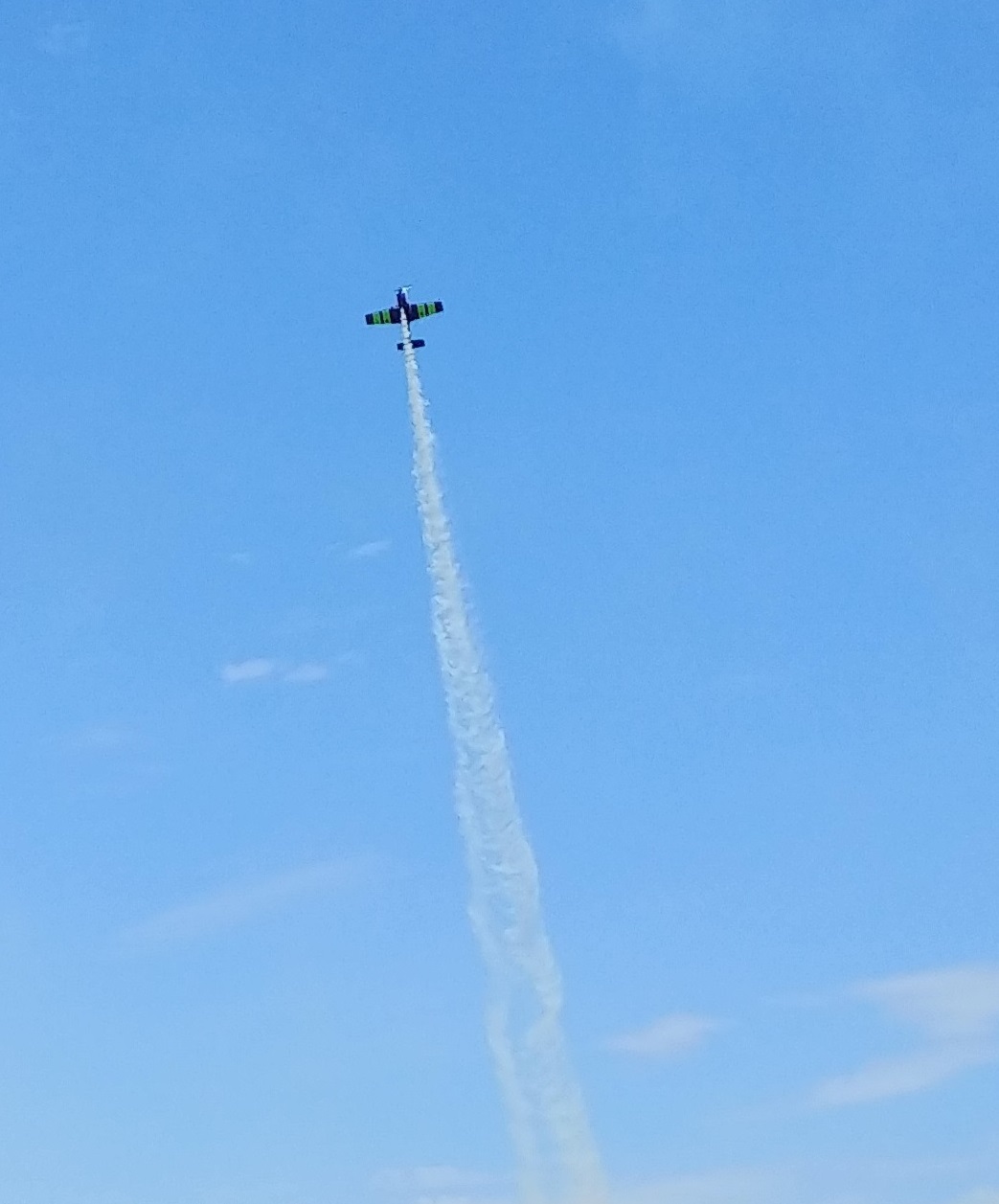 The smoke trail left by another daredevil's corkscrewing descent.![]()