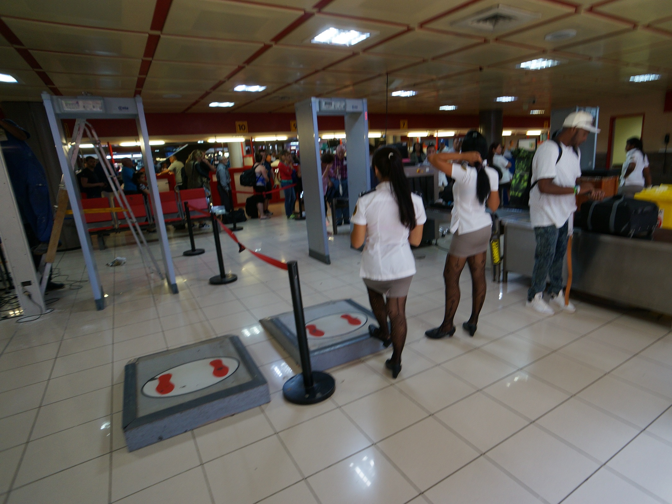 (I haven't seen skirts this short on security personnel at other airports. And their stockings were patterned fishnet.)