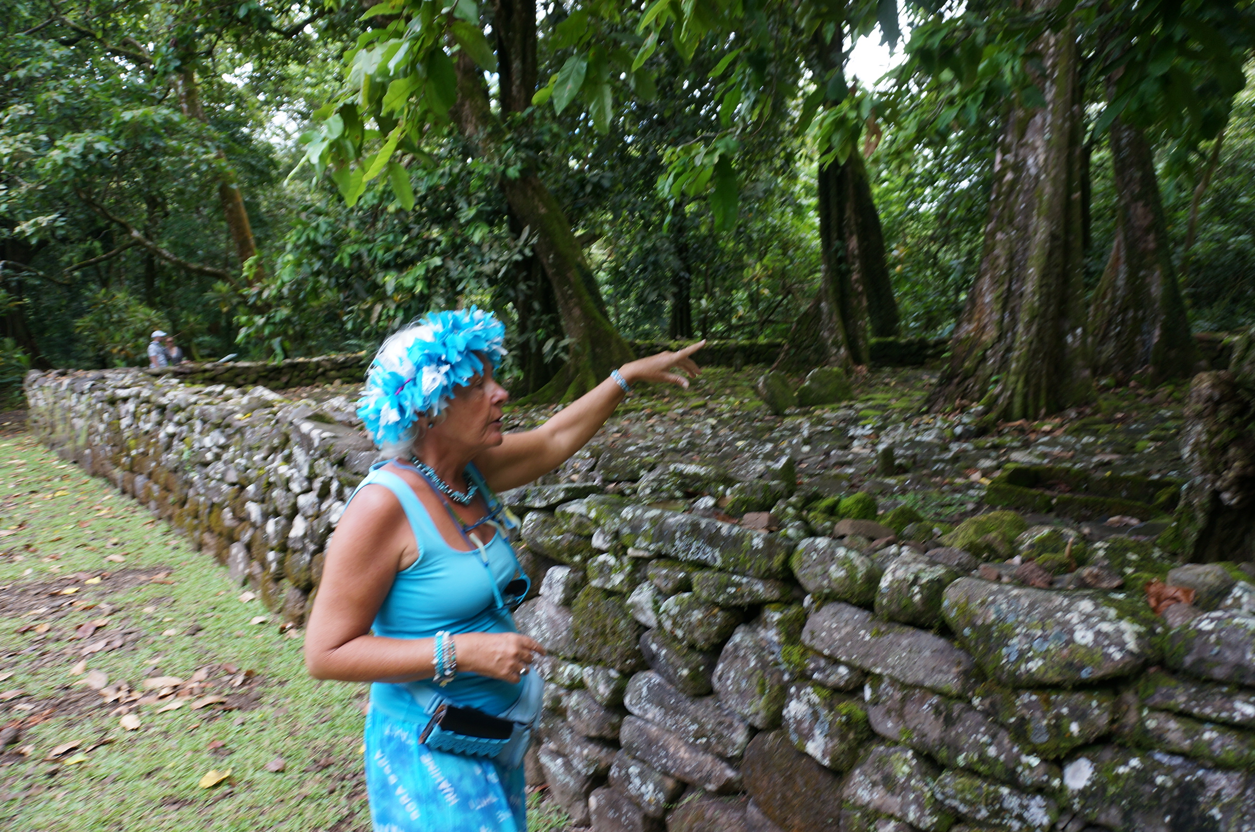 At one of the ancient ruins of a marae. (For more information, see Wikipedia.)