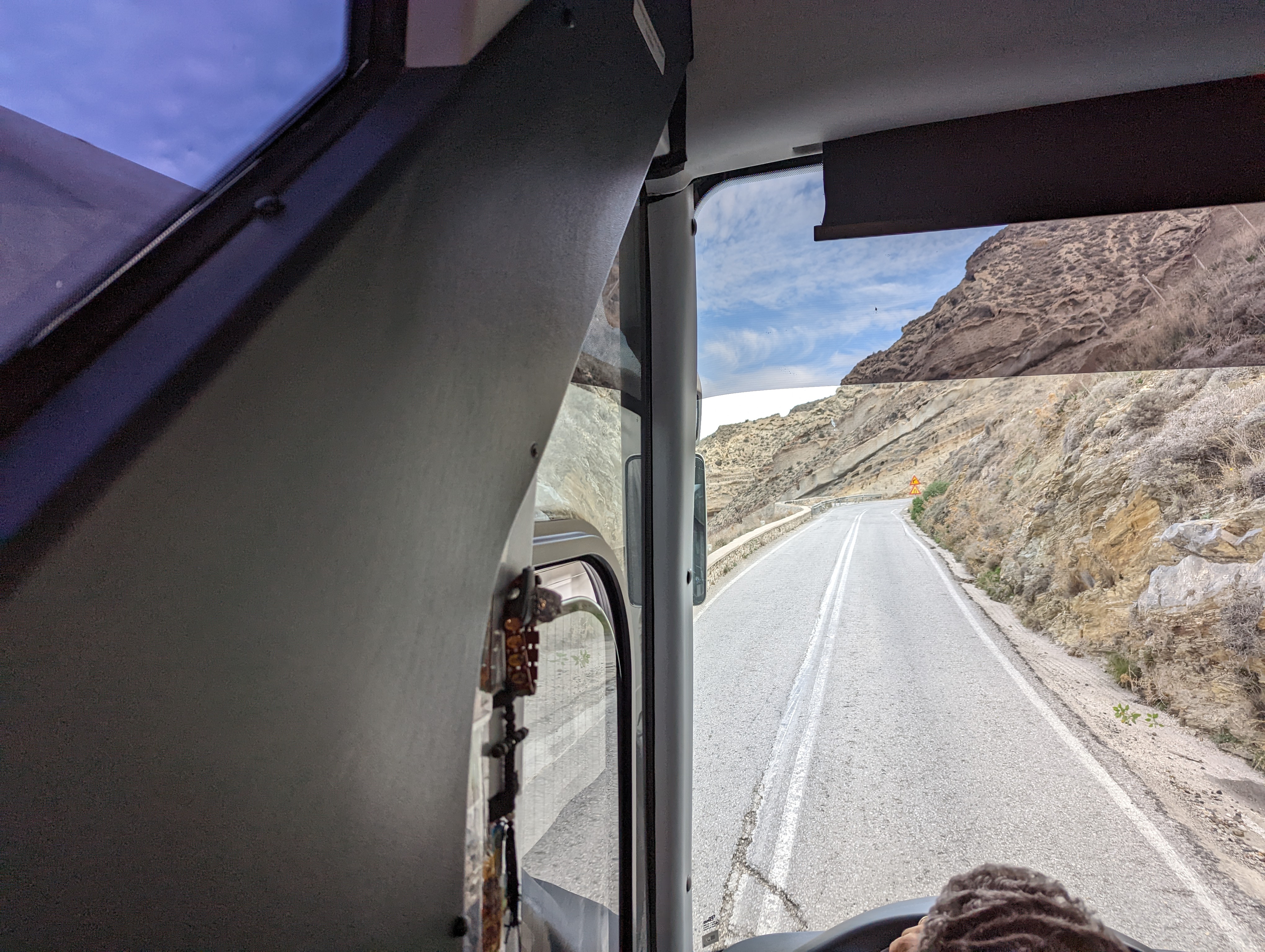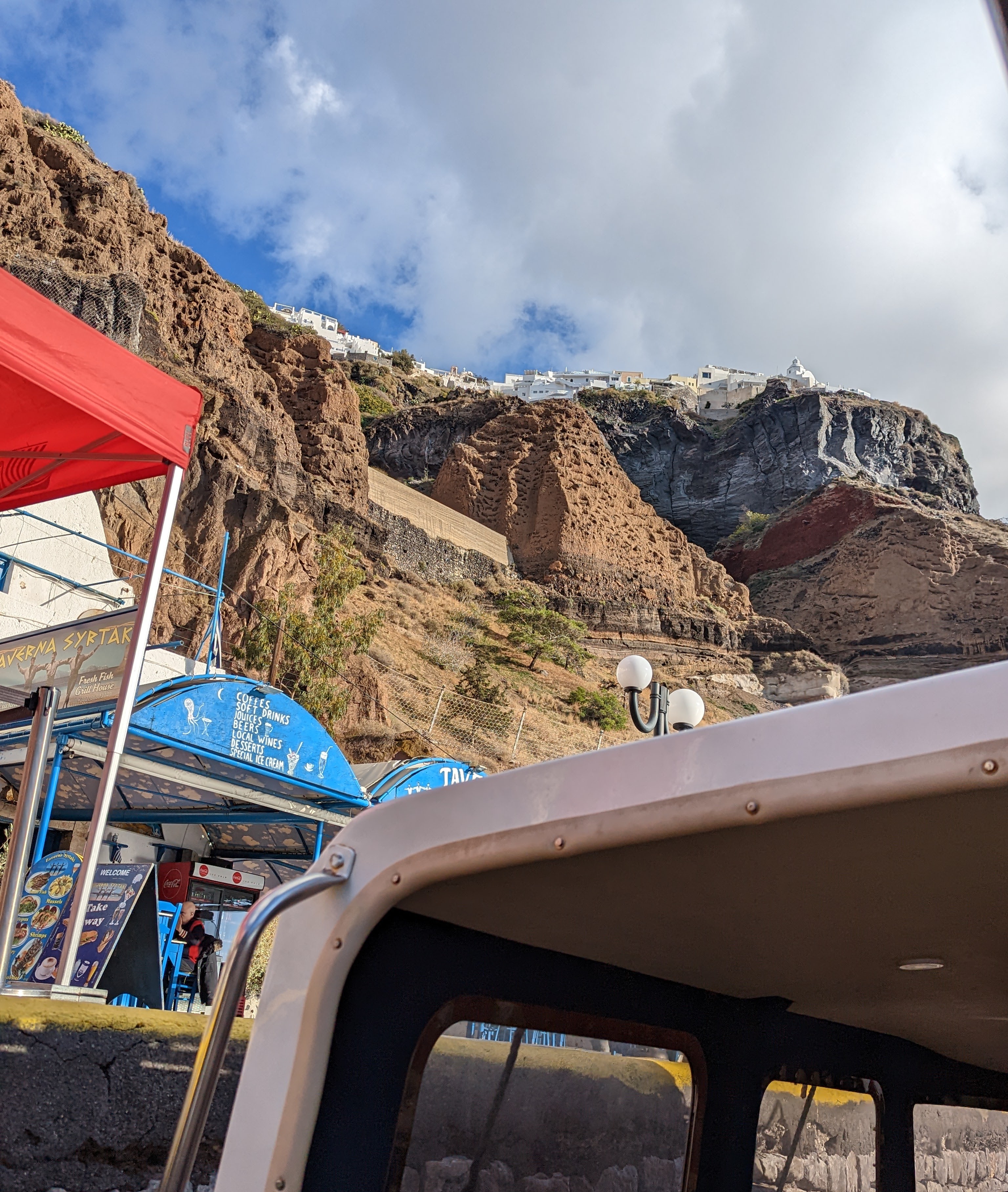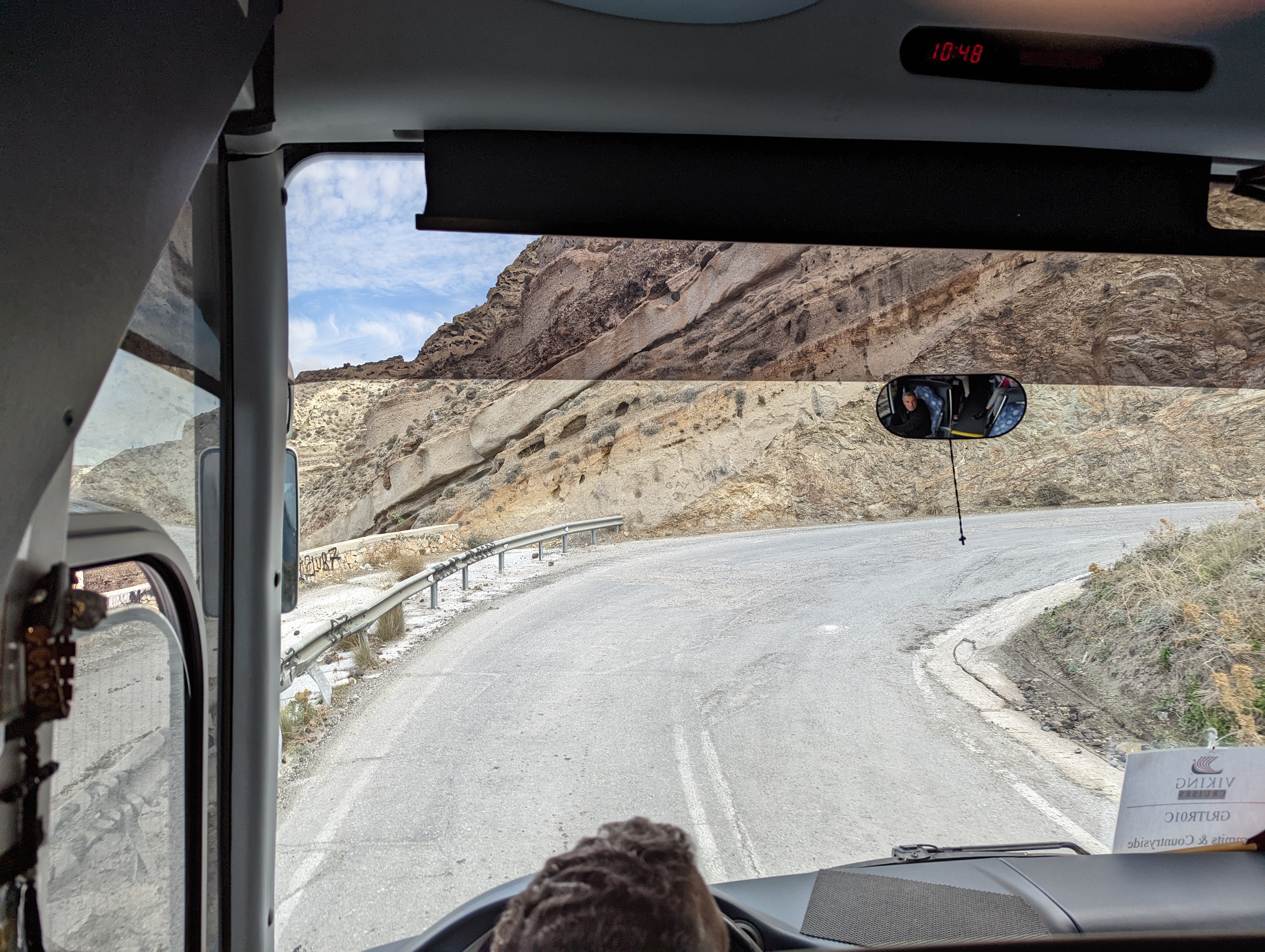 This zig-zagging road going up the cliff will be our route to the top.![]()