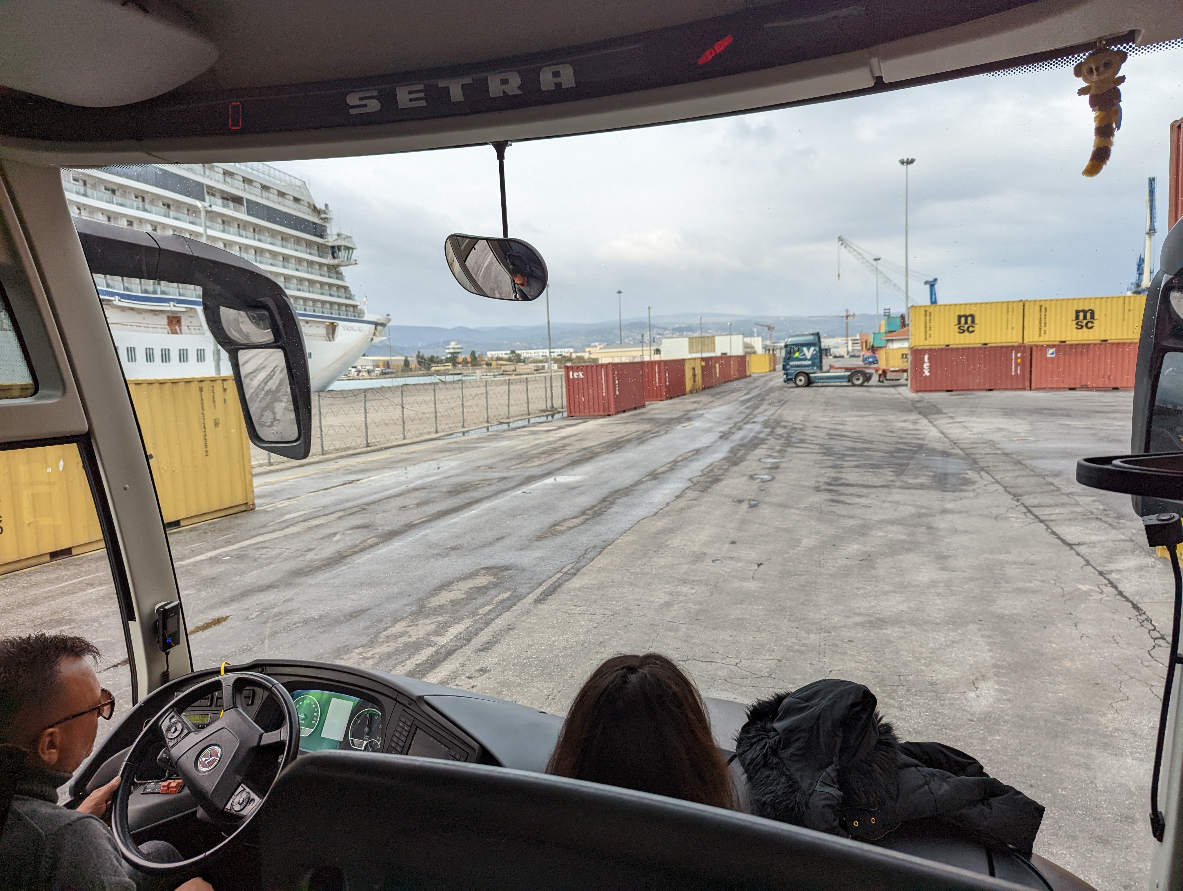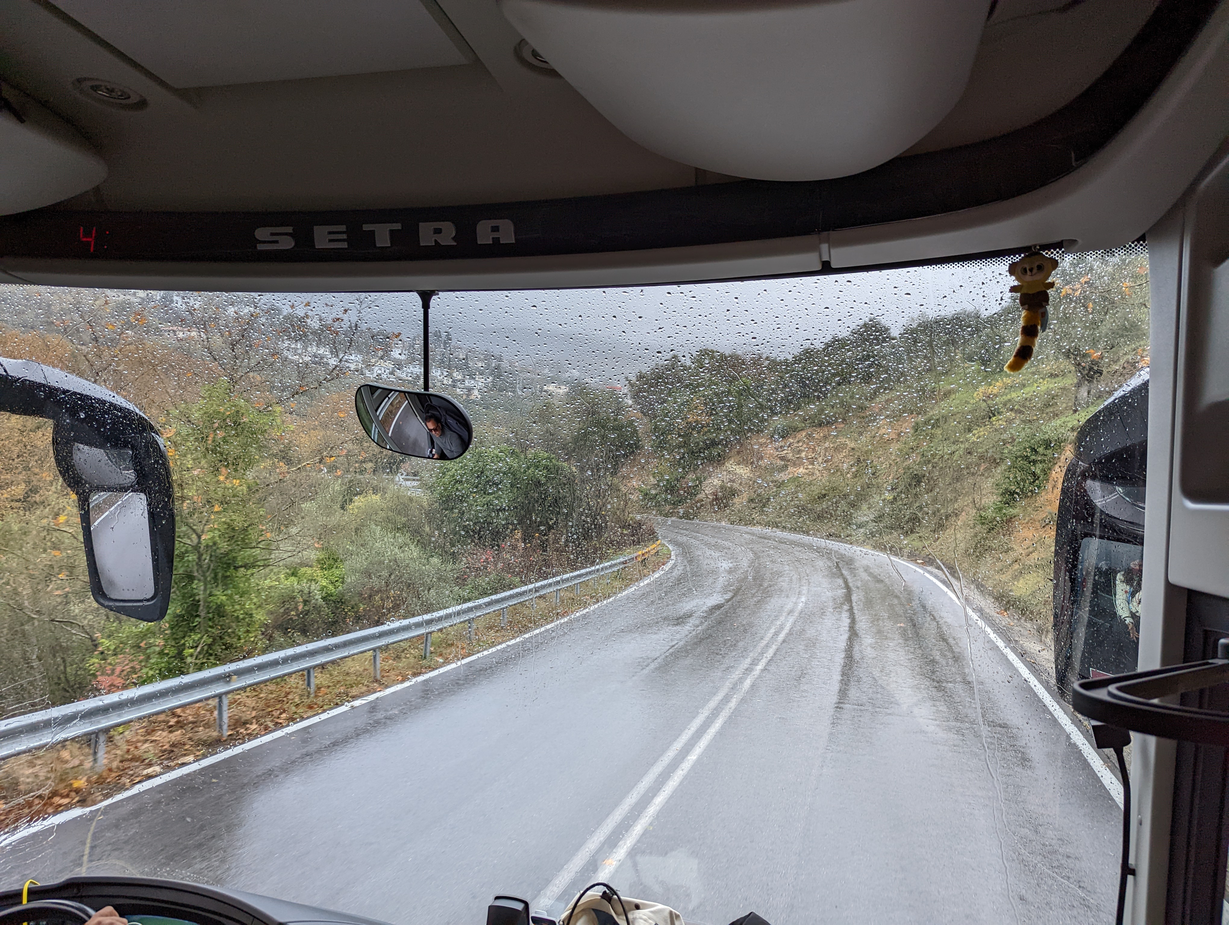Back on the bus. Rain — which would be with us off-and-on for days.Pictures from Day Six.