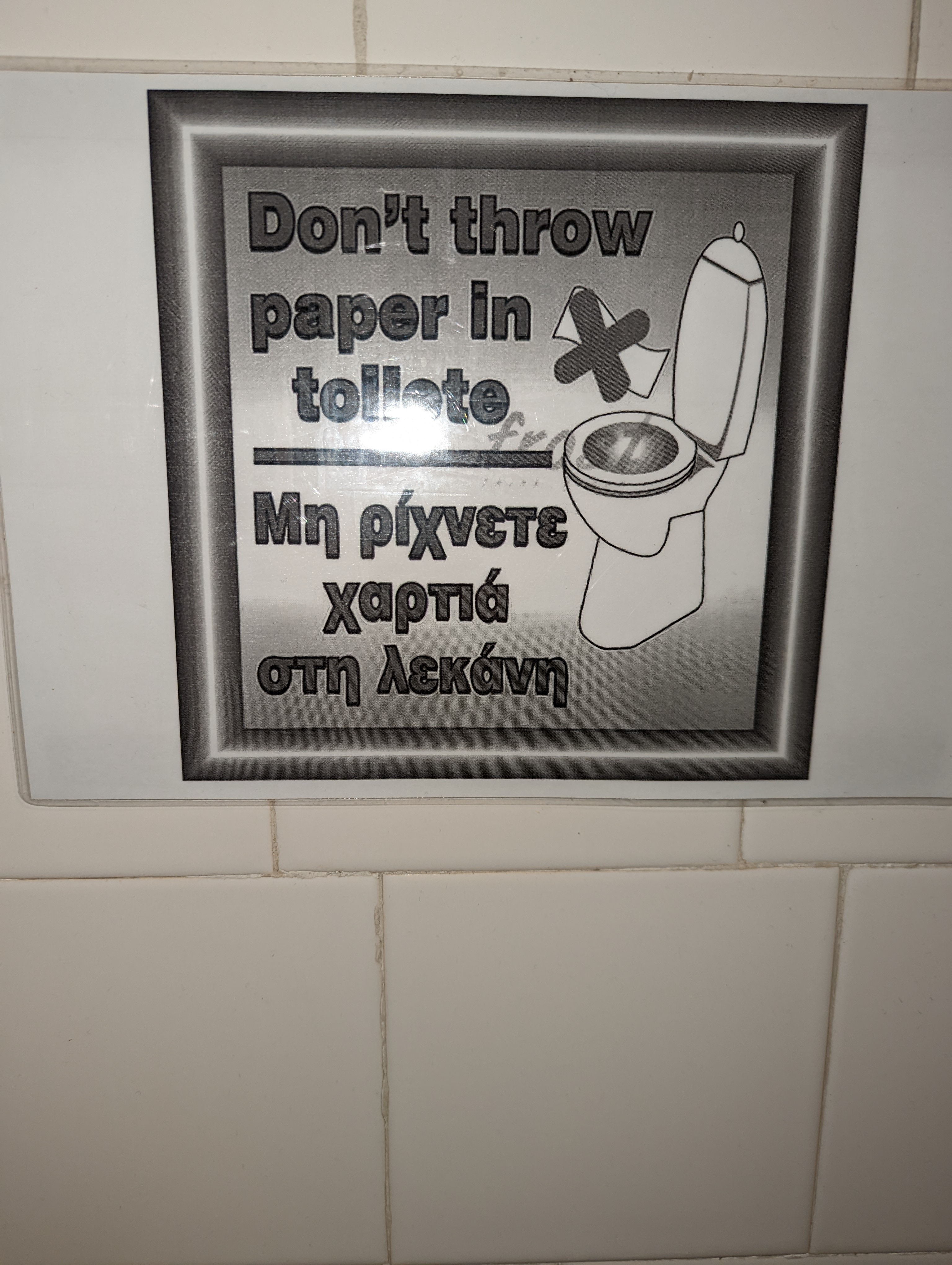 Everywhere in Greece were reminders not to throw stuff into the toilets![]()
