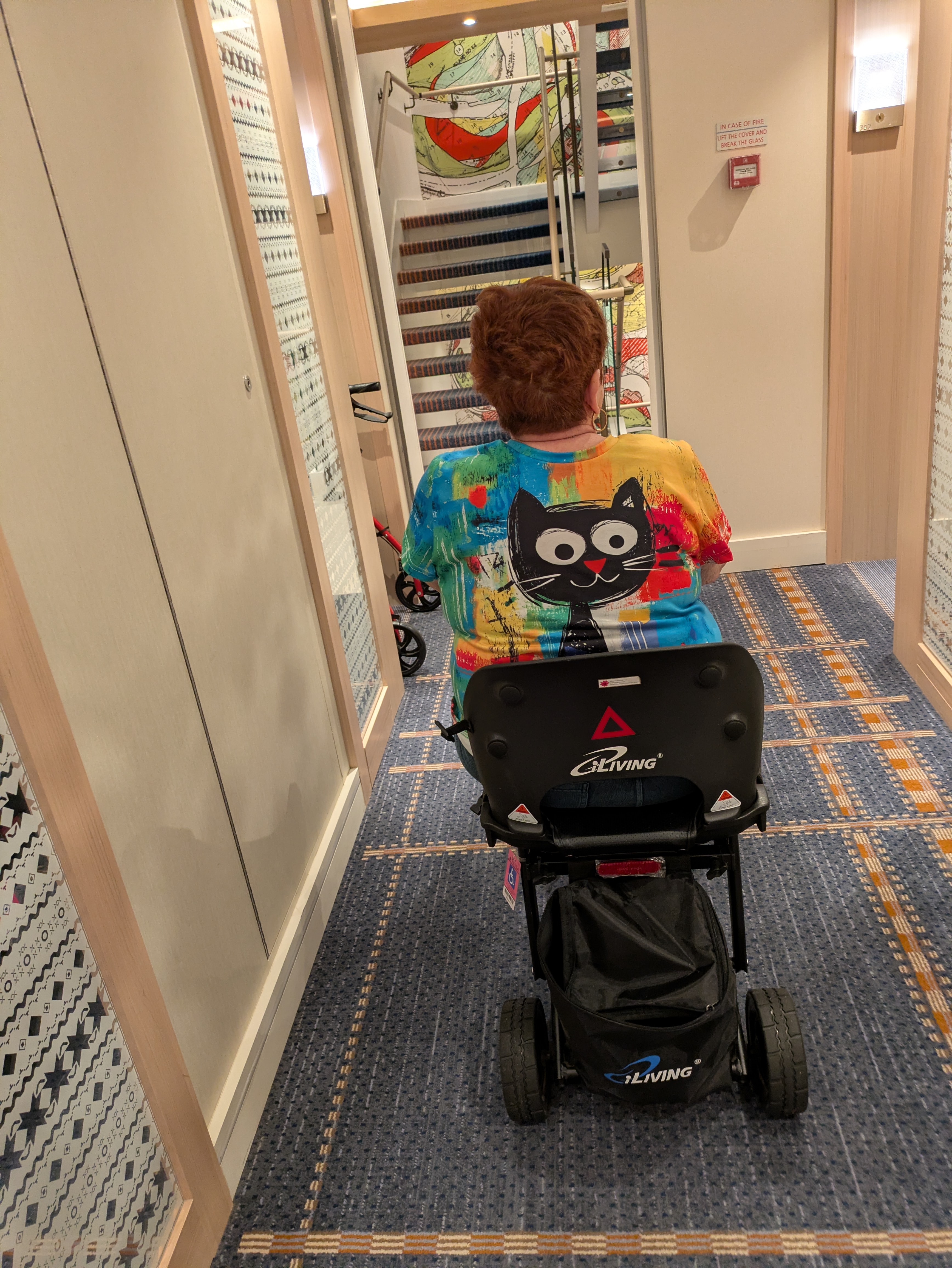 Steph and her black cat riding her scooter Another riverboat