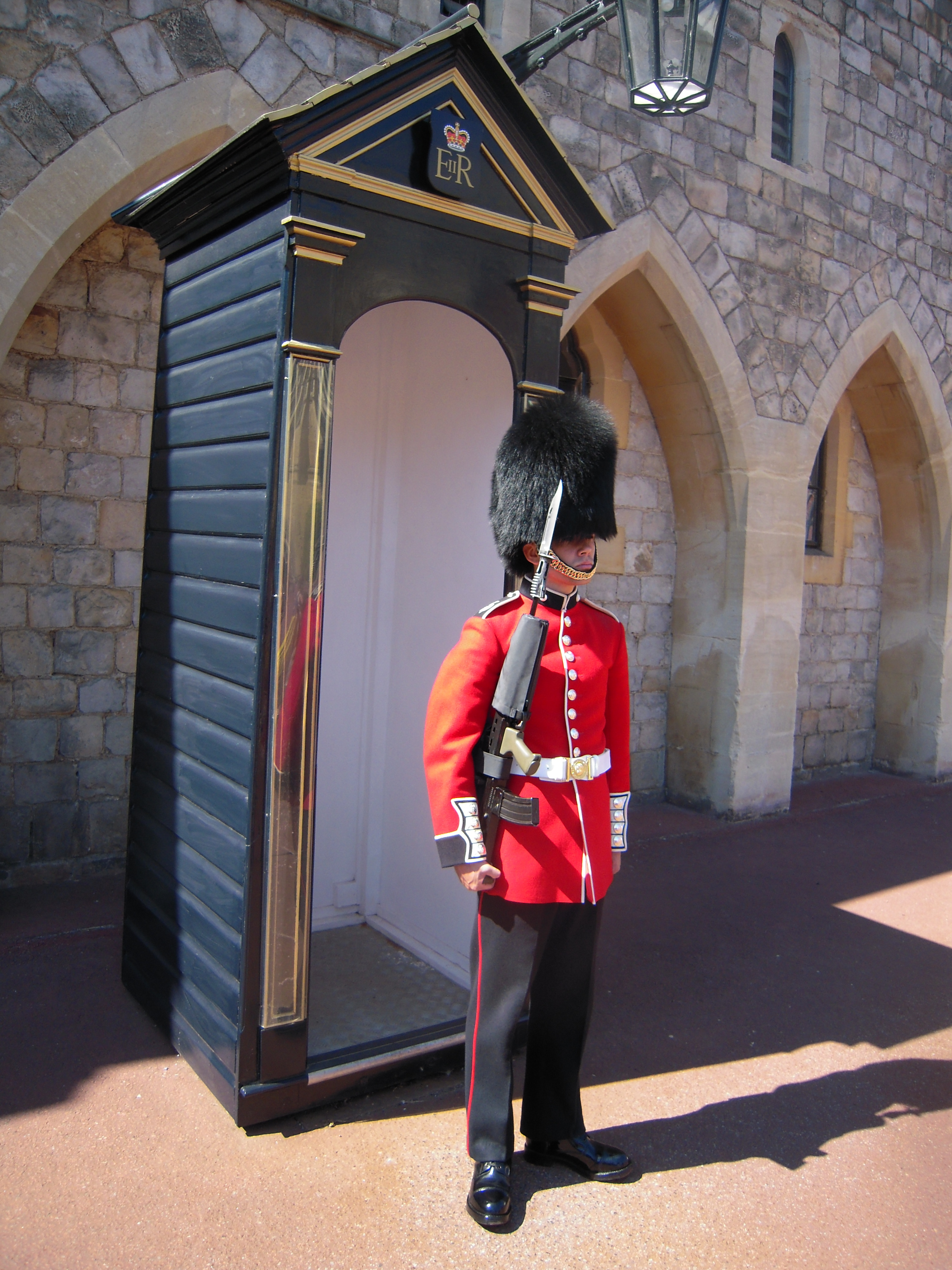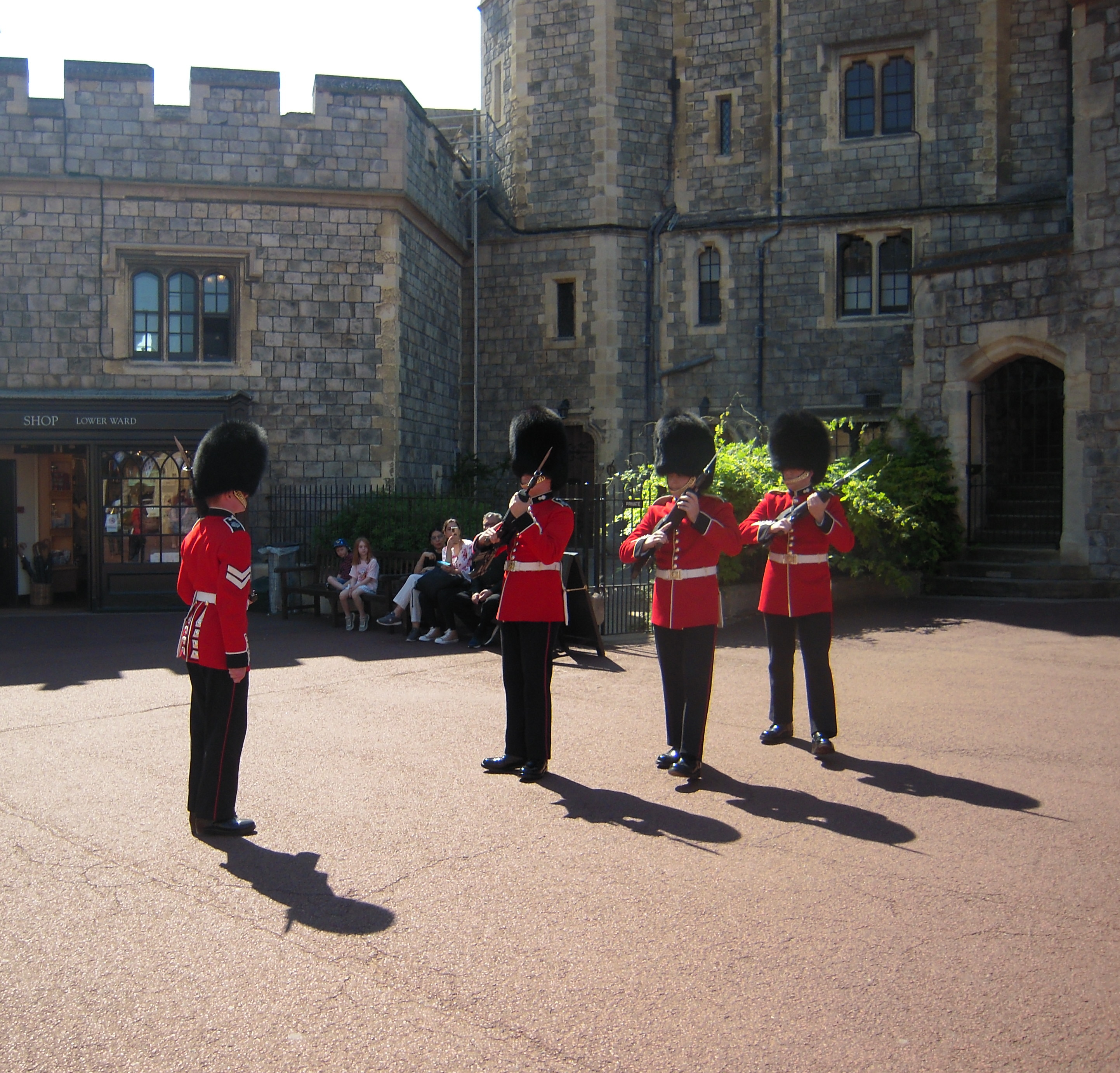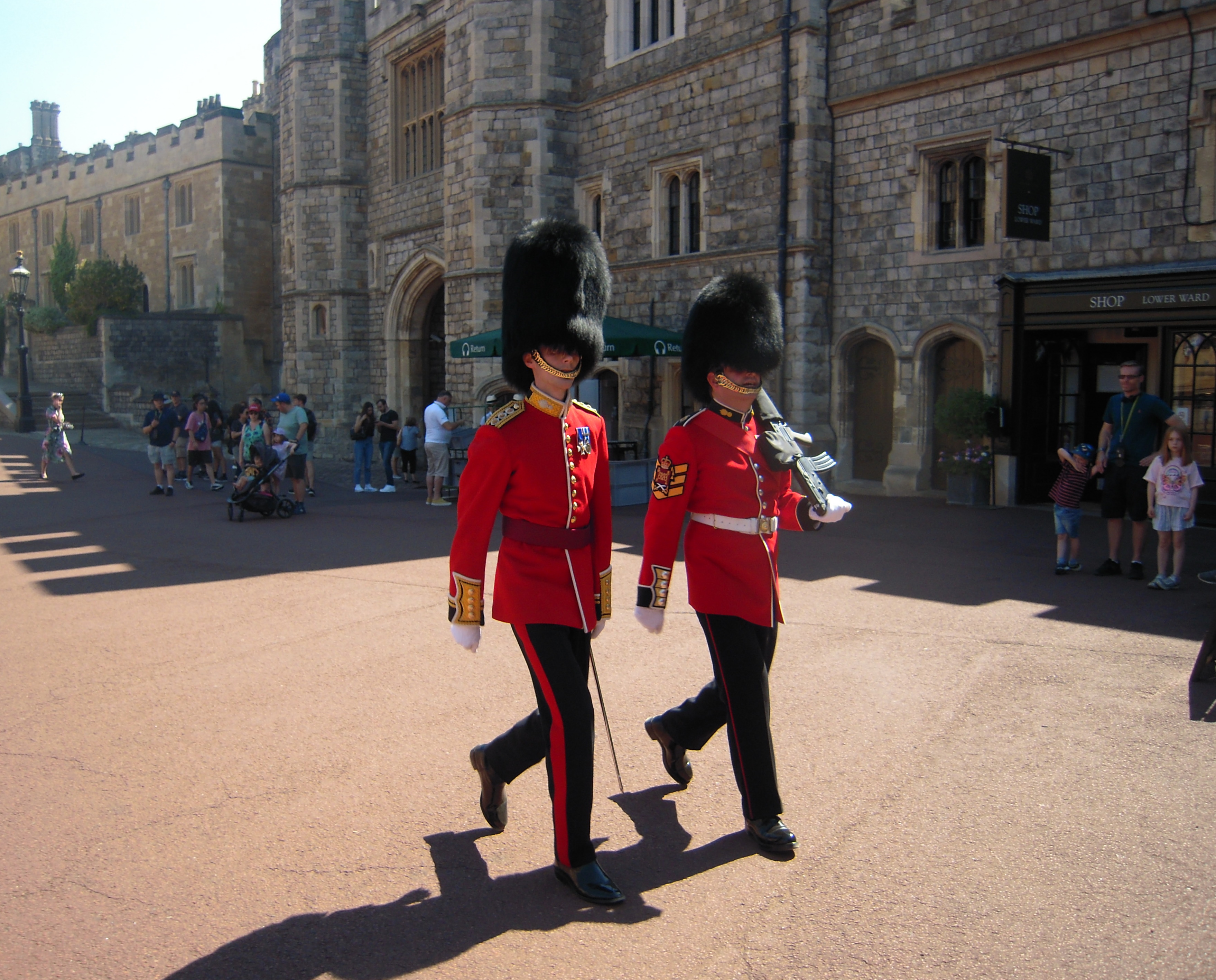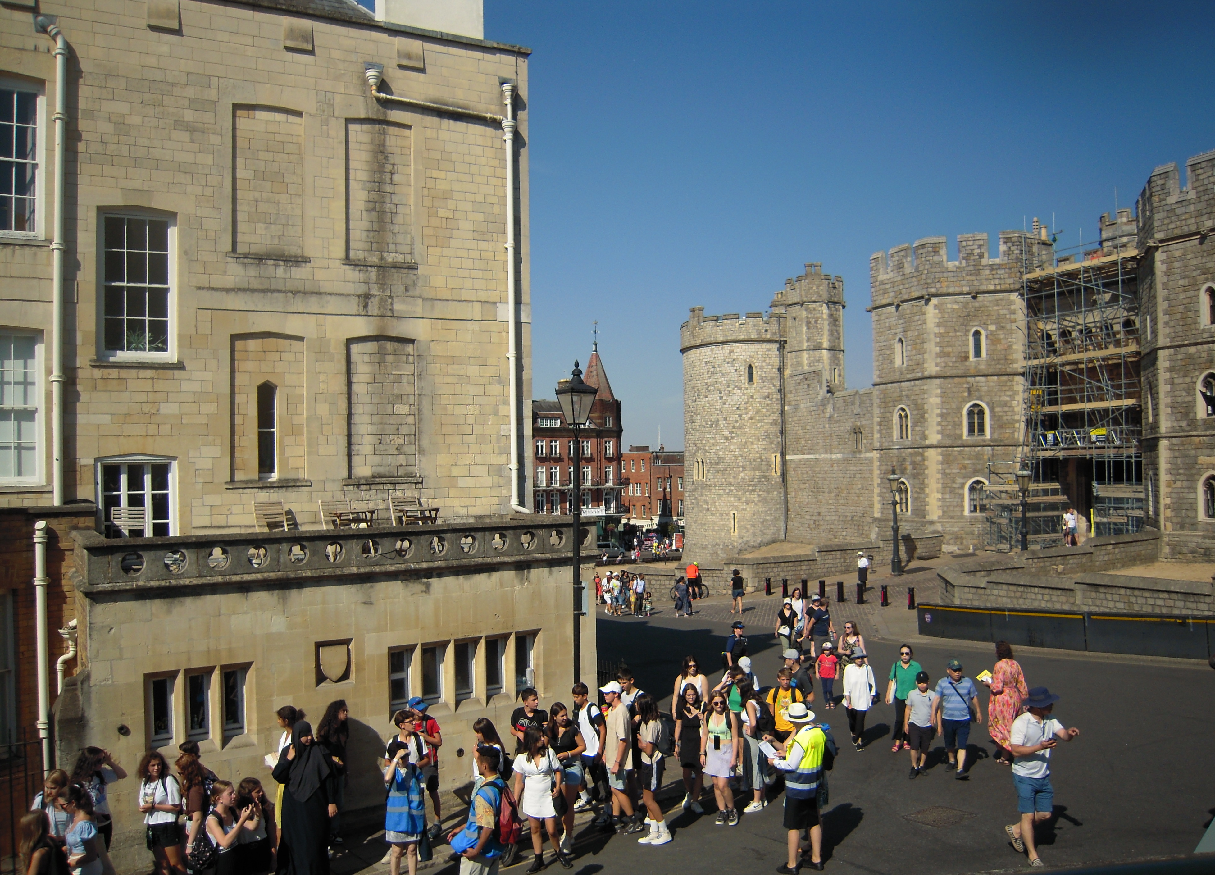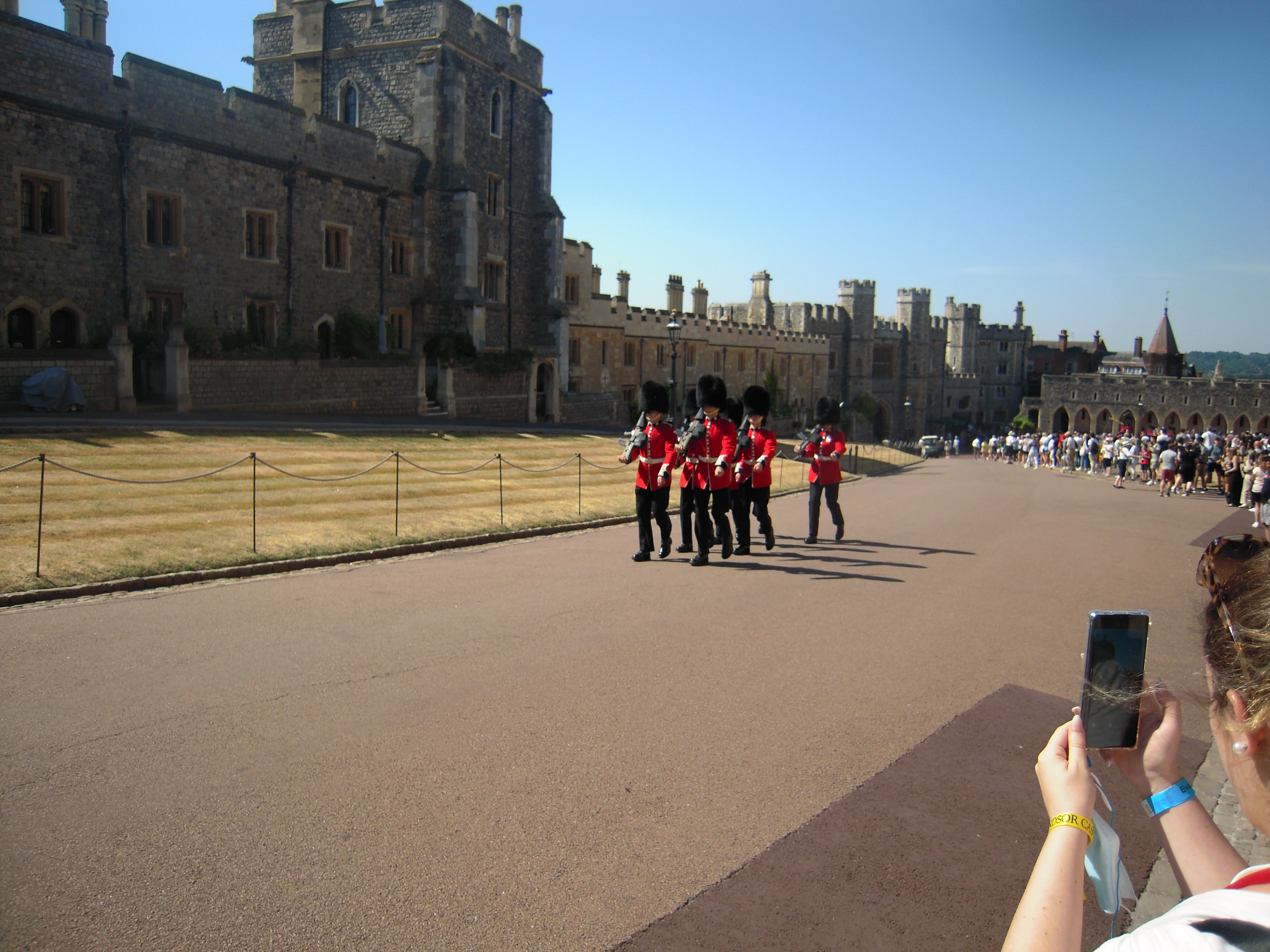 Windsor Castle in the distance. This photo was taken from the bus parking lot.![]()