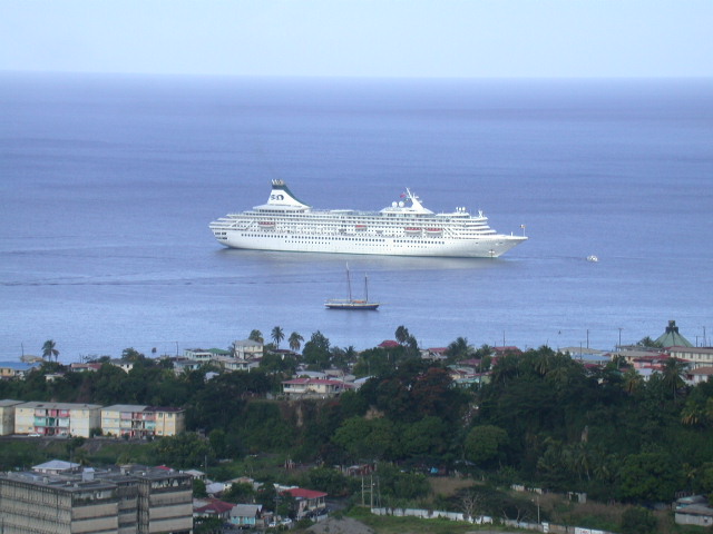 View of our ship from a hillside at the start of our Grand Tour of Dominica.
