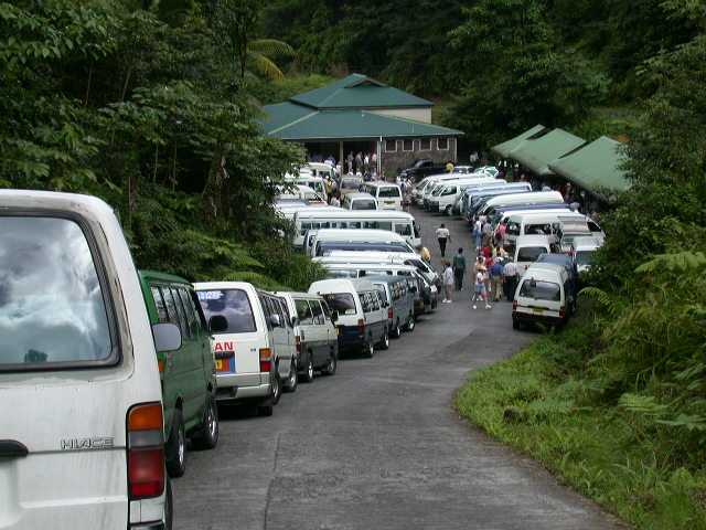 Grand Tour of Dominica: minibuses at the Emerald Pool.