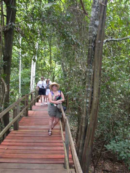 Steph on the elevated walkway to the water lilies.