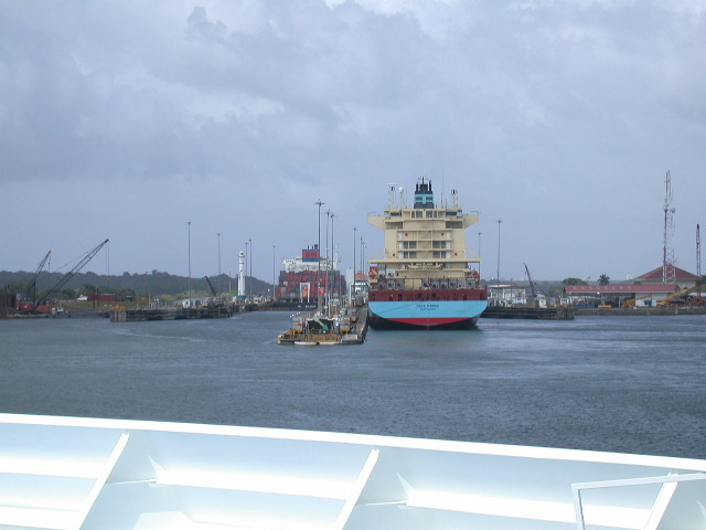 The Rotterdam. Apparently she came in from the Atlantic side, stayed overnight then turned around and went back out the Atlantic side (a very unsatisfactory way to experience the canal, in our opinion!)
