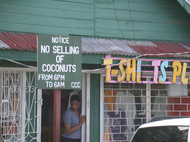 We haven't decided which sign is more interesting: the coconut warning or the misspelling resulting from the dropped "R"