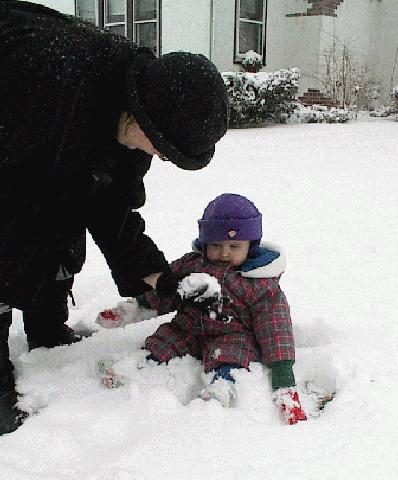 Jen and Josie play in the snow.