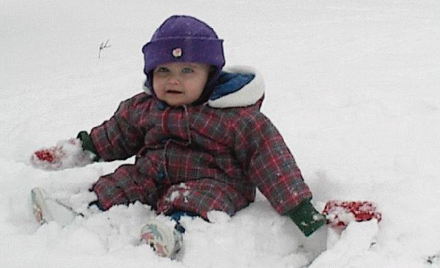 Josie enjoys her first time playing in the snow.