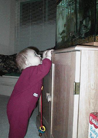 Josie looks at daddy's aquarium.
