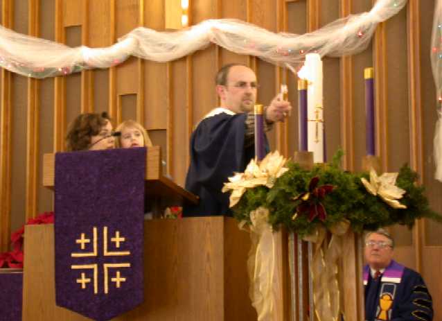 - Josie and Jen watch as Russ lights the candles at the Advent Service at church (December 9, 2001)