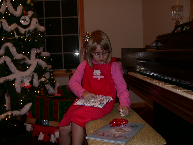Josie unwrapping one of her presents.