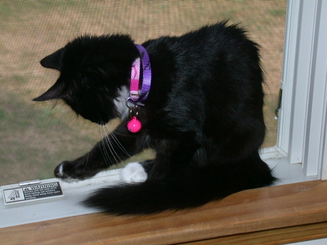 -- More pictures of Sharlee: Sharlee on the windowsill Sharlee reading the warning Sharlee staring (August 16&17, 2002)