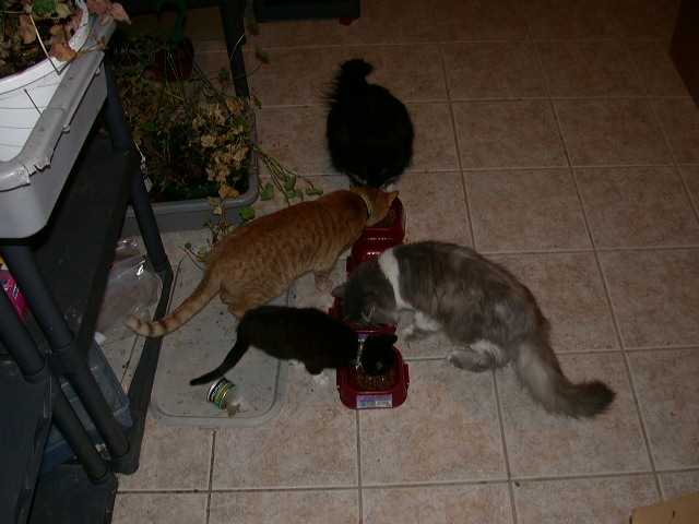 -- 4 kitties eating(December 24, 2004)