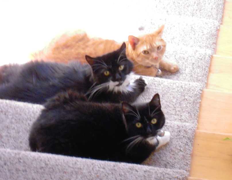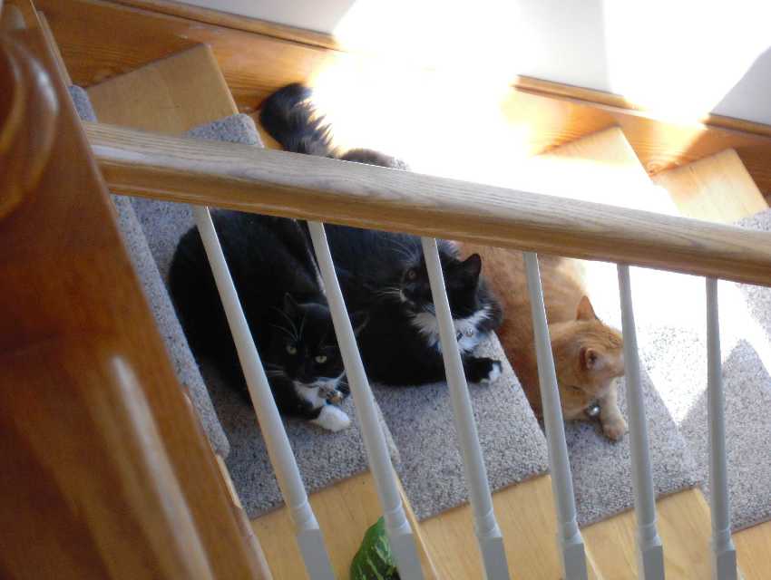 -- Stair kitties (From the top: Samantha, Sharlee, Miranda): from upstairs side view (October 14, 2009)