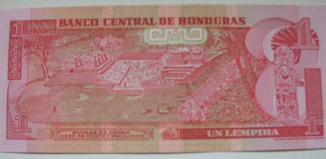 Our tour guide gave us each a one-Lempira banknote, showing the same ball court, and