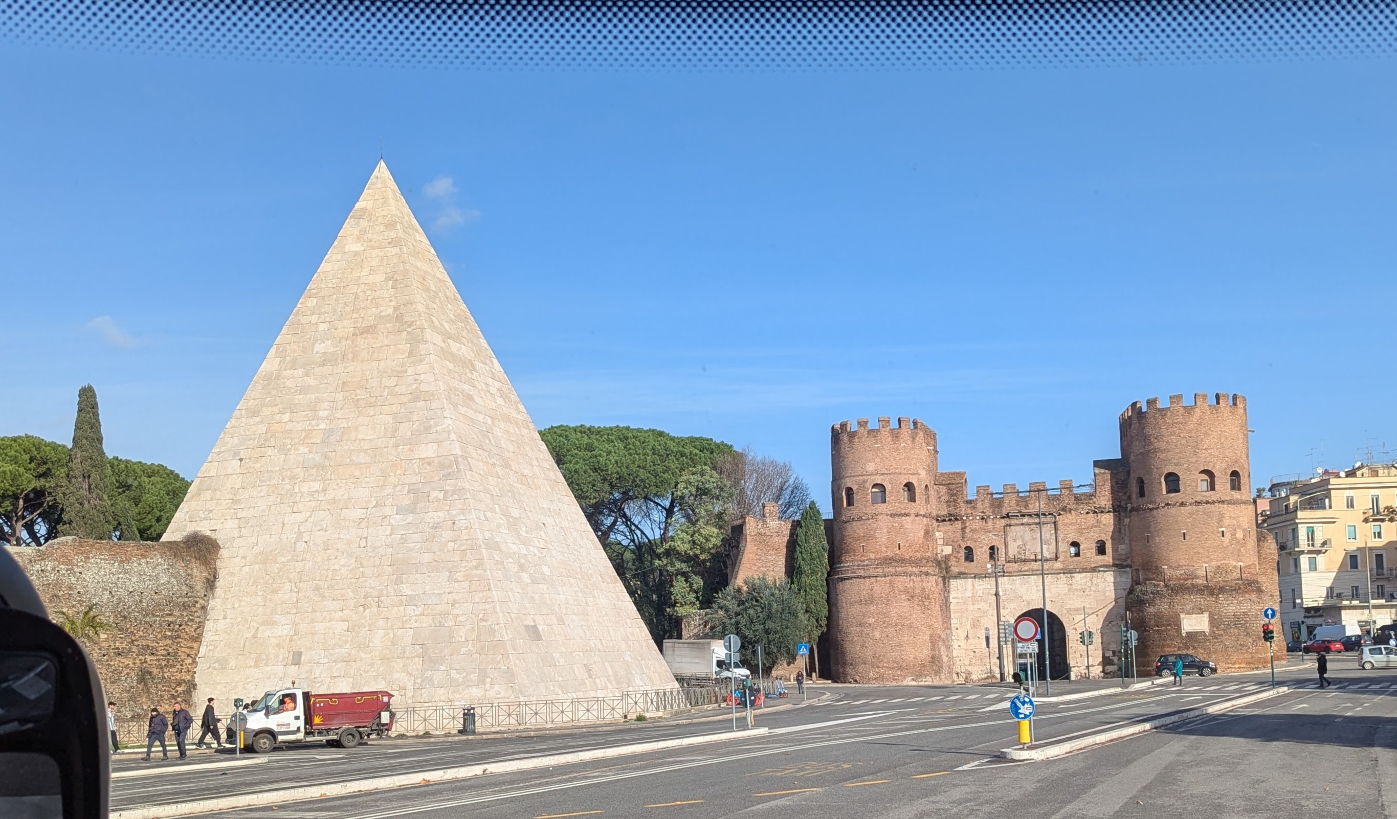 View of something from the bus stop area. Perhaps it wasSt. Peter's Basilica at the Vatican?