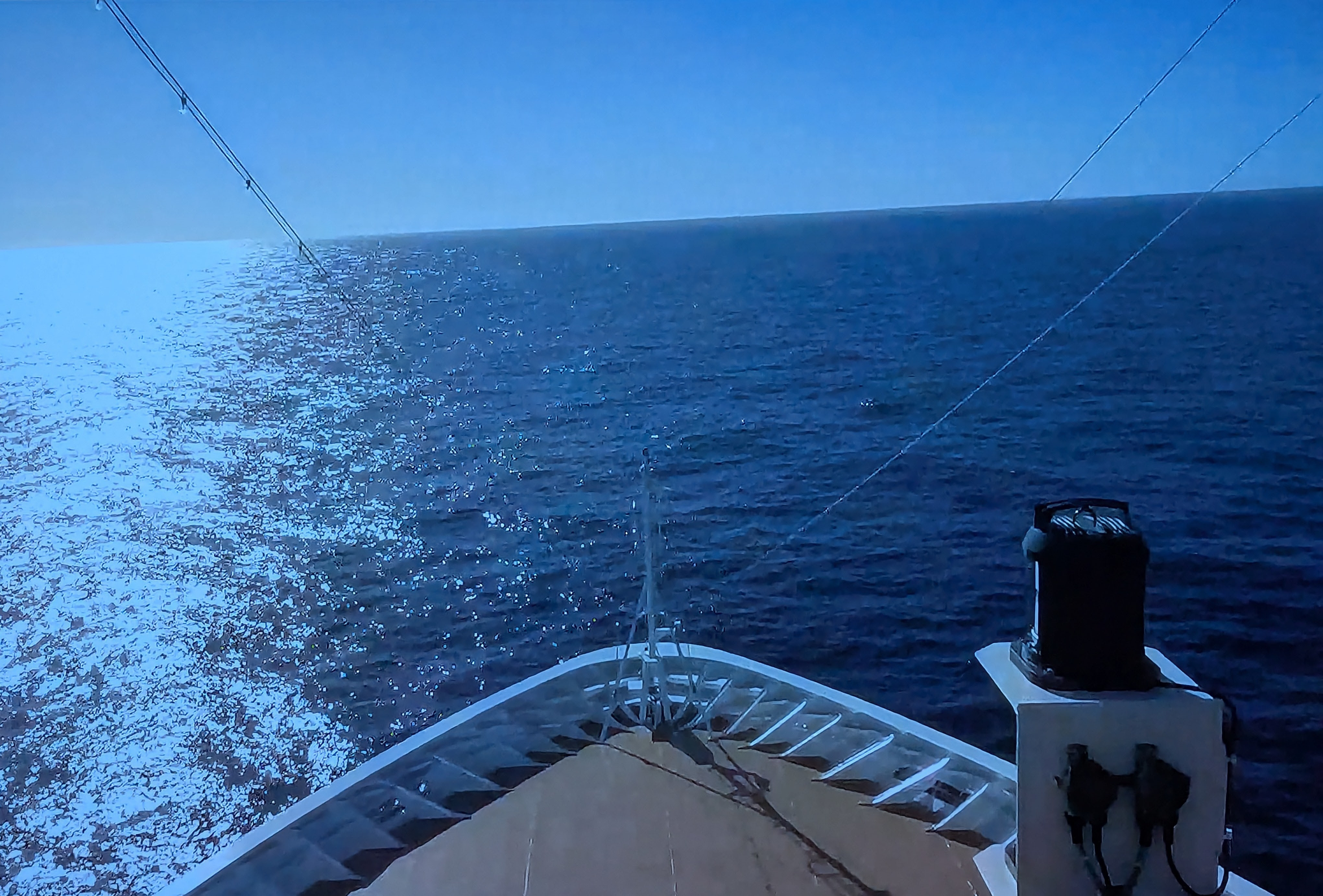 This is the view from the ship's forward-facing camera,as displayed on our television.