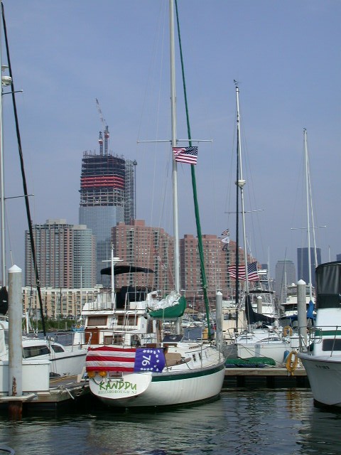 Our sailboat, the KANDDU, safely back in Liberty Landing Marina.