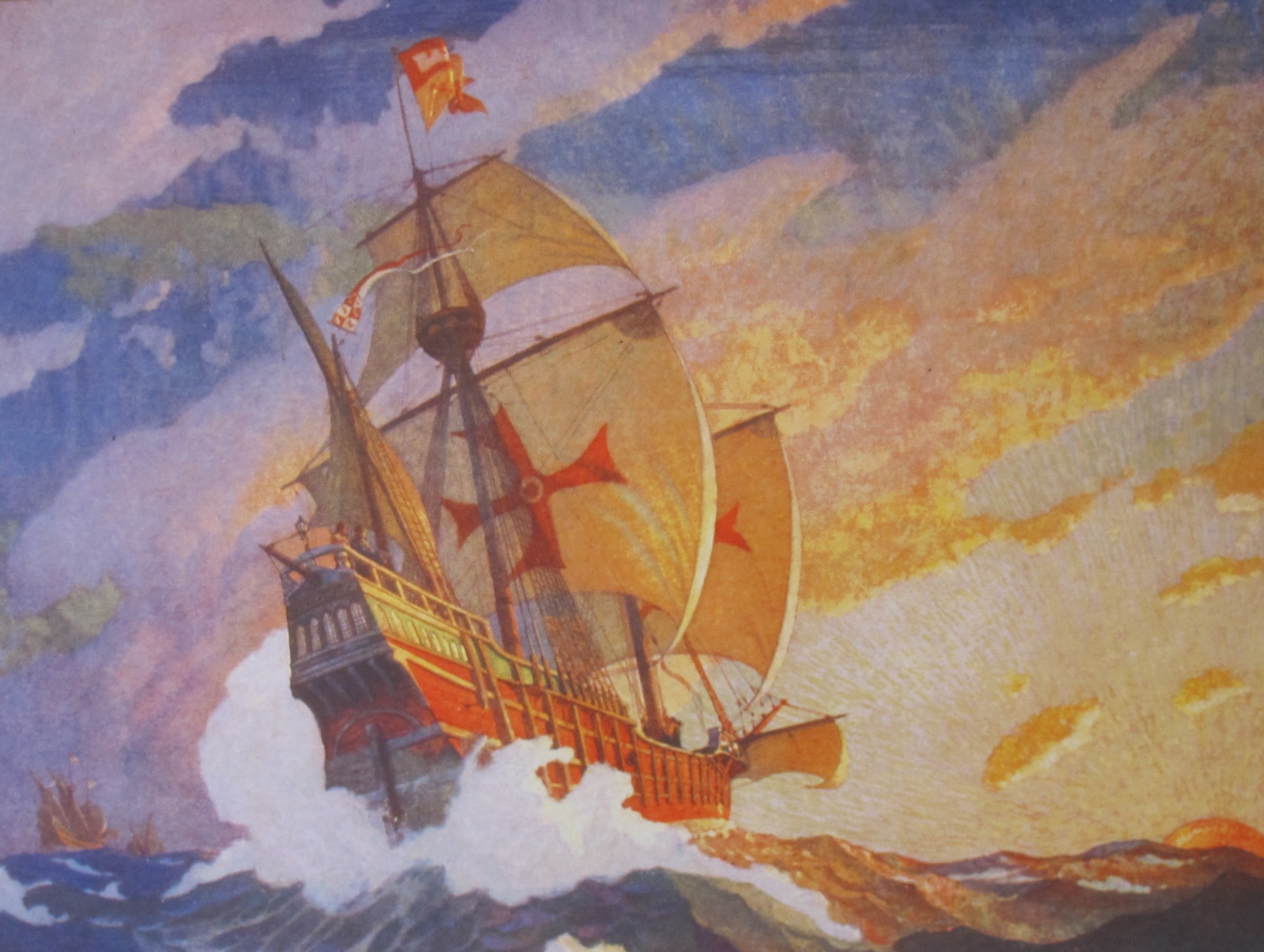 Painting of a Spanish ship, perhaps near San Juan.![]()