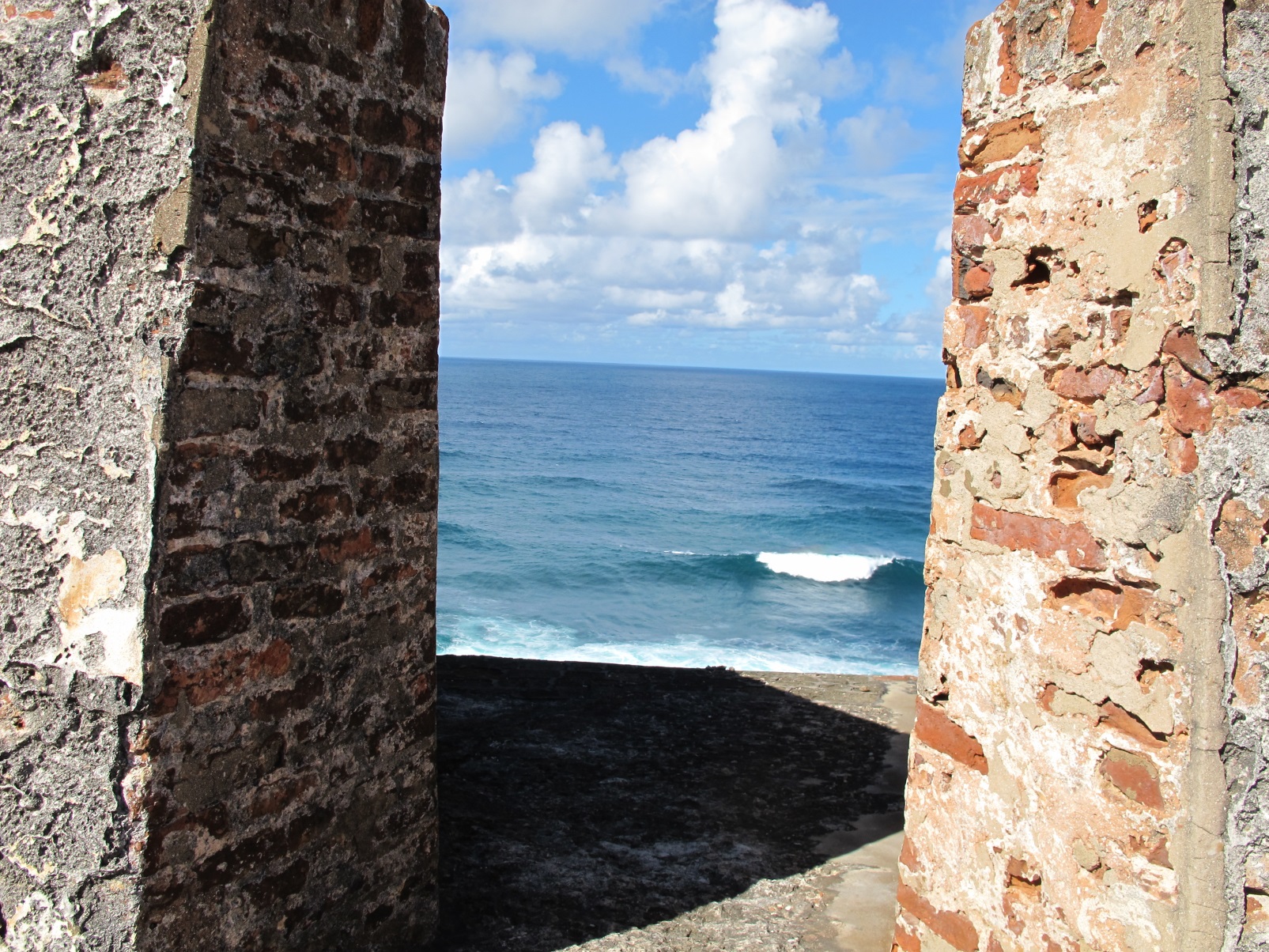 From El Morro, looking down at the entrance to the harbor — the two buoys mark the channel.![]()