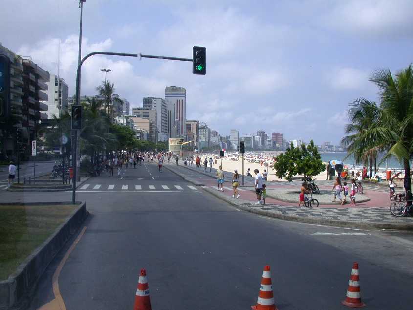The highway along the Ipanema beach was closed for Sunday sunworshippers.